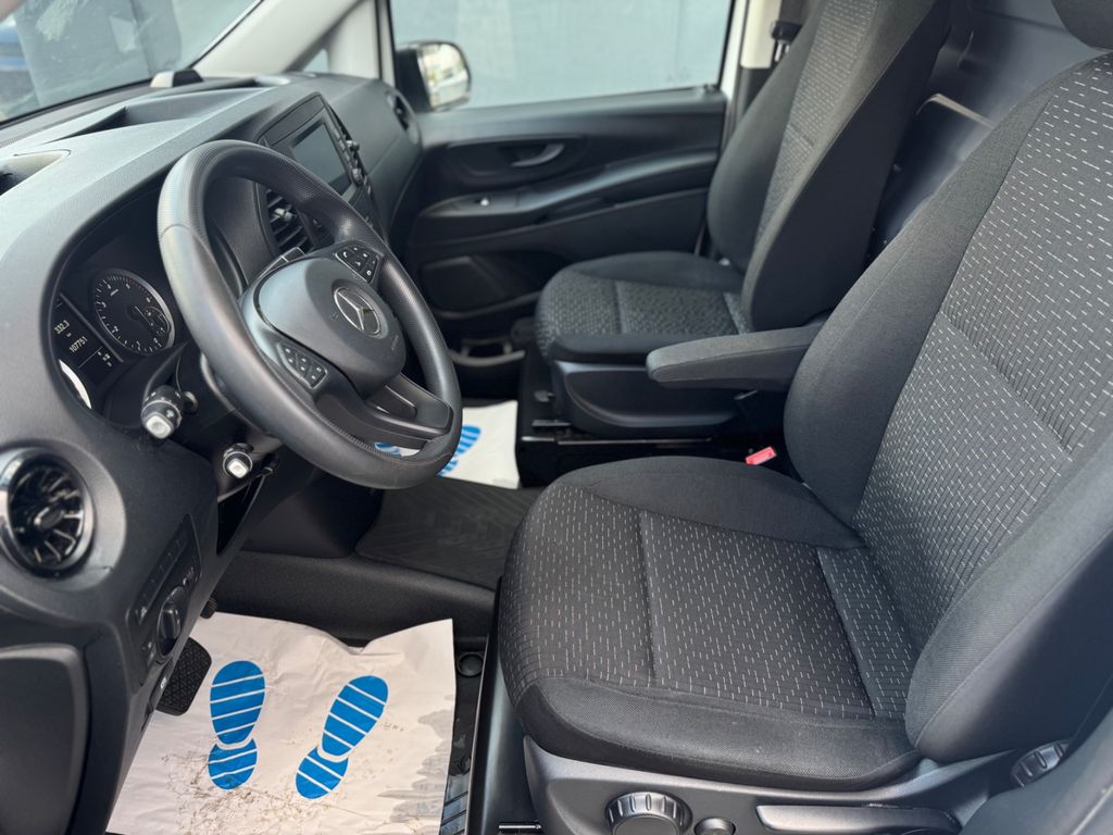 3-Tasten-Fernbedienung für Zentralverriegelung, 3. Bremsleuchte, Adaptives Bremslicht, Airbag Beifahrerseite, Airbag Fahrerseite, Anfahrhilfe (Berganfahr-Assistent), Außenspiegel asphärisch, beide, Außentemperaturanzeige, Befestigungsschienen für Dachträger, BlueEfficiency-Paket, Bremsassistent, Deckenleuchte im Laderaum, Design- und Ausstattungslinie Base, Fahrassistenz-System: Attention-Assist (Müdigkeitserkennungs-Sensor), Fahrassistenz-System: Pannenmanagement, Fahrassistenz-System: Seitenwind-Assistent, Frontscheibe mit Scheibenantenne, Generator 200 A, Geschwindigkeits-Begrenzeranlage 210 km/h, Getriebe Automatik GTronic - (9-Stufen), Getränkehalter vorn, Gurtstraffer, Handschuhfach abschließbar, Karosserie/Aufbau: Kasten Standard, Karosserie/Aufbau: lang, Kommunikationsmodul (LTE) für digitale Dienste, Laderaumtrennwand durchgehend, Lastenverankerung / Verzurrösen, Mercedes-Benz Notrufsystem, Modellpflege, Motor 2,0 Ltr. - 100 kW CDI KAT, Nebelschlussleuchte, Radstand 3200 mm, Schadstoffarm nach Abgasnorm Euro 6d-TEMP, Schiebetür Lade-/Fahrgastraum rechts, Sicherheitsgurt-System mit Warnanlage (Fahrer-/Beifahrerseite), Sitzbezug / Polsterung: Stoff, Verkleidung Fenstersäulen, Verkleidung im Lade-/FG-Raum: Hartfaser halbhoch, Vlies-Batterie 92 Ah, Wartungsintervall-Anzeige Assyst