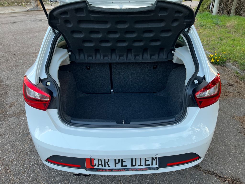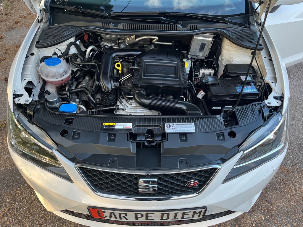 3-Punkt-Sicherheitsgurt hinten mitte, 3. Bremsleuchte, Ablagetasche an Vordersitzlehnen, Airbag Beifahrerseite abschaltbar, Airbag Fahrer-/Beifahrerseite, Antriebs-Schlupfregelung (ASR), Außenspiegel elektr. verstell- und heizbar, beide, Außenspiegel elektr. verstell-, heiz- und anklappbar, beide, Außenspiegel konvex, links, Außenspiegel und Türgriffe außen in Wagenfarbe, Außentemperaturanzeige, Bordcomputer, Bremsassistent, Comfort-Ablagen-Paket, Elektr. Bremskraftverteilung, Elektron. Differentialsperre (EDS), Fahrassistenz-Paket, Fahrassistenz-System: Müdigkeitserkennung, Gepäckraumabdeckung / Rollo, Heckleuchten LED, Heckscheibe heizbar, Innenraumfilter: Pollenfilter, Isofix-Aufnahmen für Kindersitz, Karosserie: 5-türig, Klimaanlage Climatronic 2-Zonen, Kofferraumbeleuchtung, Kopfstützen hinten, Kopfstützen vorn verstellbar, Kühlergrill schwarz, Lenkrad (Sport/Leder) mit Multifunktion, Lenksäule (Lenkrad) höhenverstellbar, Licht- und Sicht-Paket, Motor 1,0 Ltr. - 81 kW TSI, Reifen-Reparaturset, Reifenkontroll-Anzeige, Rücksitz geteilt, Rücksitzlehne geteilt/klappbar (1/3-2/3), Schadstoffarm nach Abgasnorm Euro 6, Schalt-/Wählhebelgriff Leder, Scheibenbremse hinten, SEAT Media-System Plus, Seitenairbag, Seitenscheiben hinten und Heckscheibe abgedunkelt, Sitz vorn links höhenverstellbar, Sitz vorn rechts höhenverstellbar, Sport-Fahrwerk FR / Cupra, Start/Stop-Anlage, Steckdose (12V-Anschluß) vorn, Stoßfänger FR-Design, Verglasung getönt