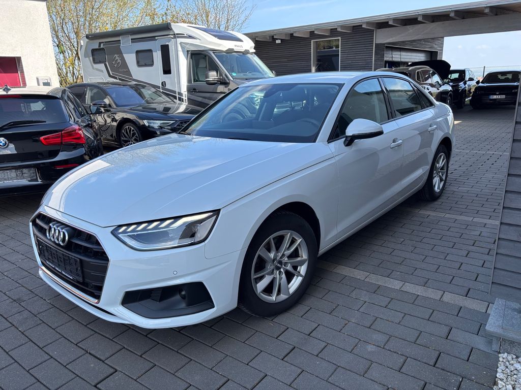 Airbag Beifahrerseite abschaltbar, Audi connect (Notruf- und Assistance-System), Außenspiegel Wagenfarbe, Blinkleuchten LED in Außenspiegel integriert, Dachhimmel Stoff, Einstiegsleisten mit Aluminiumeinlage, Fahrassistenz-System: City-Notbremsfunktion (Audi pre sense City), Fensterzierleisten schwarz, Frontscheibe Akustikglas, Funkschlüssel, Fußmatten Velours, Geschwindigkeits-Begrenzeranlage, Heckklappenöffnung automatisch, Innenausstattung: Dekoreinlagen Akzentteile in der Armaturentafel schwarz matt, Innenausstattung: Dekoreinlagen Diamantlack silbergrau, Isofix-Aufnahmen für Kindersitz, Karosserie: 4-türig, Klimaautomatik, Kopf-Airbag-System (Sideguard), Leichtlaufreifen, LM-Felgen, Mild-Hybrid 120 kW (Motor 2,0 Ltr. - 120 kW 16V TDI), Mild-Hybrid-Technologie, Modellpflege, Multi-Media-Interface MMI Basic Plus / MMI Radio Plus, Nichtraucher-Paket, Radioempfang digital (DAB), Reifen-Reparaturkit, Reifendruck-Kontrollsystem, Schadstoffarm nach Abgasnorm Euro 6d, Scheibenwaschdüsen heizbar, SCR-System (AdBlue-Technologie), Seitenairbag vorn, Sitze vorn manuell einstellbar, Standard-Fahrwerk, Start/Stop-Anlage, Stoßfänger Ausführung: Basis, Universal-Schnittstelle Bluetooth, Wärmeschutzverglasung grün getönt