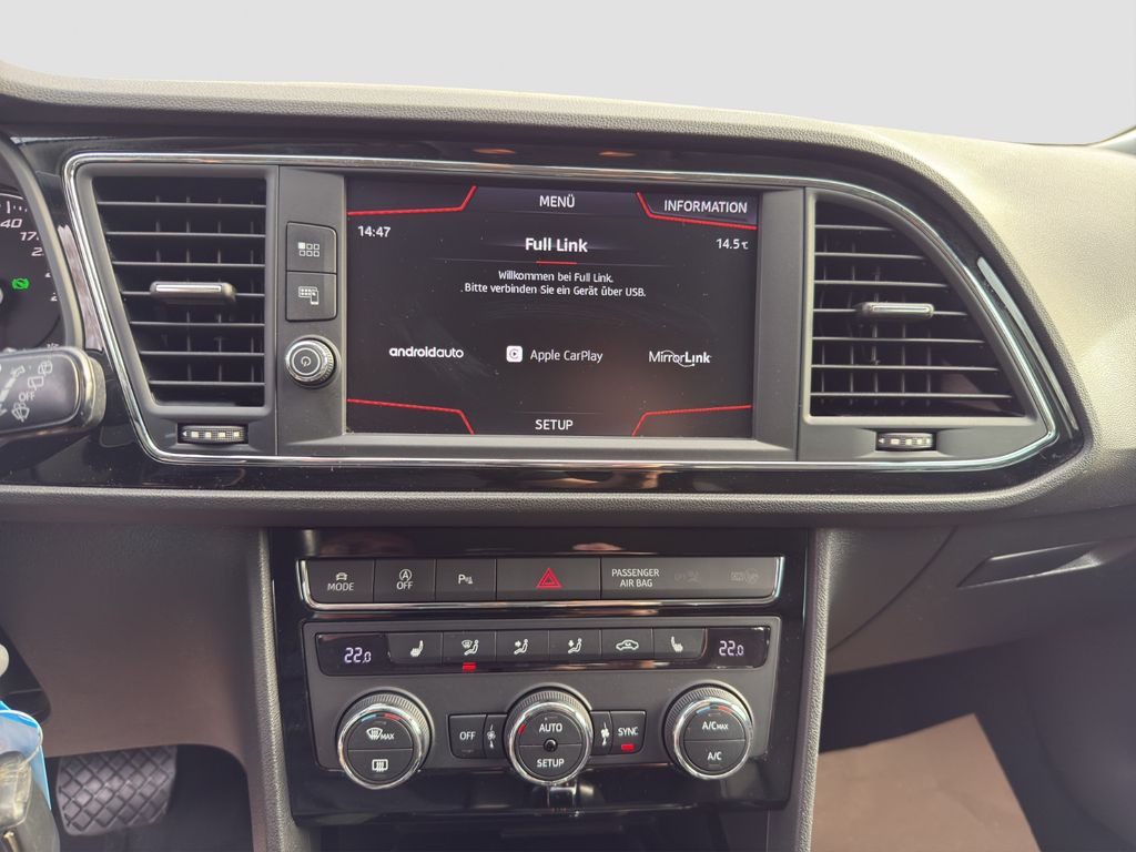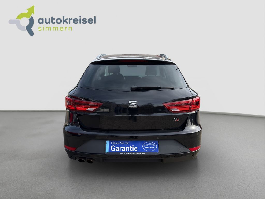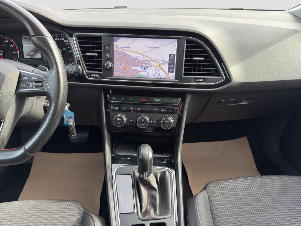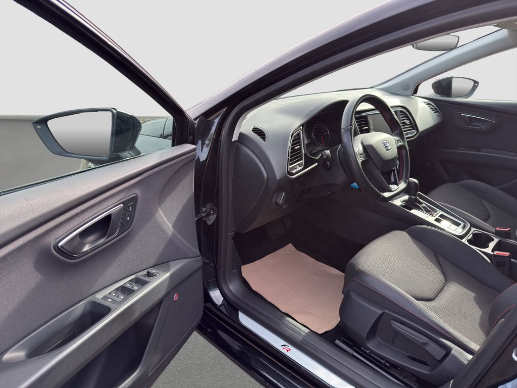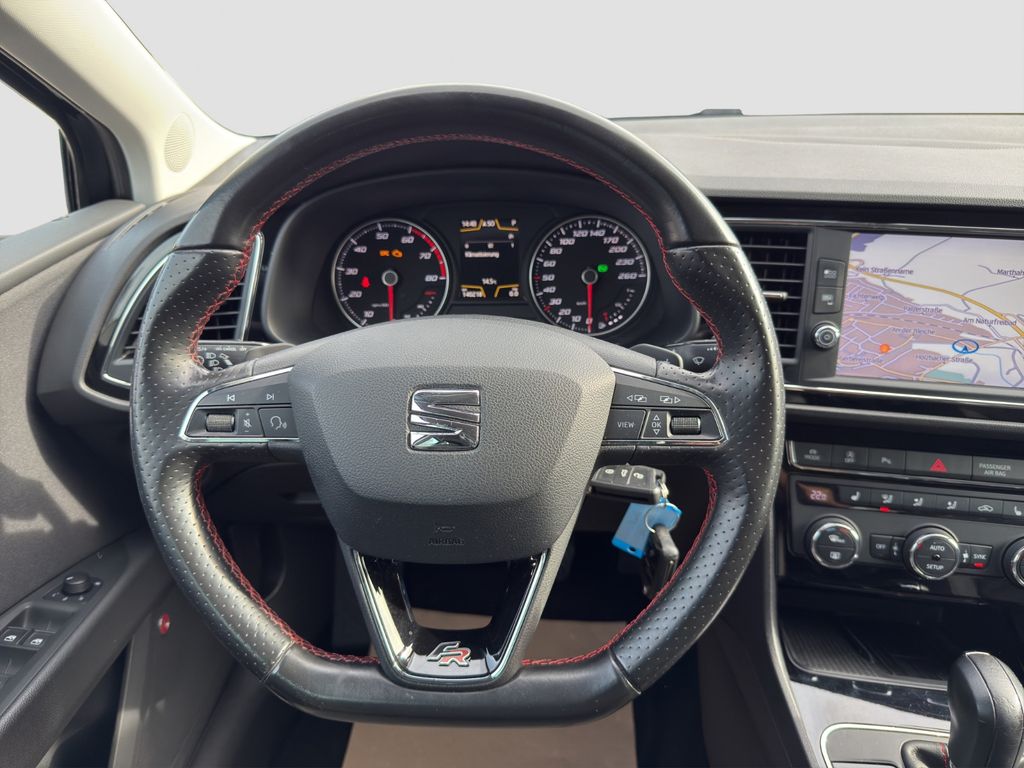 3. Bremsleuchte, Ablage-Paket, Ablagetasche an Vordersitzlehnen, Airbag Beifahrerseite abschaltbar, Airbag Fahrer-/Beifahrerseite, Ambiente-Beleuchtung LED, Antriebs-Schlupfregelung (ASR), AUX-IN-Anschluss und 2 x USB-Anschluss, Außenspiegel elektr. verstell-, heiz- und anklappbar, beide, Außenspiegel und Türgriffe außen in Wagenfarbe, Außentemperaturanzeige, Blinkleuchten LED in Außenspiegel integriert, Bordcomputer, Bremsassistent, Dachreling silber, Doppelscheinwerfer, Elektron. Differentialsperre (EDS), Fahrassistenz-System: Berganfahr-Assistent (Hill-Holder), Fahrassistenz-System: Berganfahr-Assistent und Elektron. Differentialsperre, Fahrassistenz-System: Fahrprofilauswahl (SEAT Drive Profile), Fensterheber elektrisch hinten, Gepäckraumabdeckung / Rollo, Handschuhfach beleuchtet, Heckleuchten LED, Innenausstattung: Chrom-Applikationen, Isofix-Aufnahmen für Kindersitz, Karosserie: 5-türig, Klimaanlage Climatronic 2-Zonen, Knieairbag Fahrerseite, Kofferraumbeleuchtung, Kopf-Airbag-System, Kopfstützen hinten (3-fach), Kopfstützen vorn verstellbar, Laderaumboden variabel und herausnehmbar, Lendenwirbelstütze Sitz vorn links, verstellbar, Lendenwirbelstütze Sitz vorn rechts, verstellbar, Lenkrad (Sport/Leder), LM-Felgen, Mittelarmlehne hinten, Modellpflege, Motor 1,8 Ltr. - 132 kW 16V TSI, Parkbremse elektrisch, Reifenkontroll-Anzeige, Rücksitzlehne geteilt/klappbar (1/3-2/3), Rücksitzlehnen umklappbar mit Fernentriegelung im Kofferraum, Schadstoffarm nach Abgasnorm Euro 6, Schalt-/Wählhebelgriff Leder, Seitenairbag, Seitenscheiben hinten und Heckscheibe abgedunkelt, Sitz vorn links höhenverstellbar, Sitz vorn rechts höhenverstellbar, Sonnenblende links mit Spiegel (beleuchtet), Sonnenblende rechts mit Spiegel (beleuchtet), Sport-Fahrwerk FR / Cupra, Sportsitze vorn, Sprachsteuerungs-System, Start/Stop-Anlage, Stau-/Ablagefach unter Sitze vorn, Steckdose (12V-Anschluß) im Koffer-/Laderaum, Steckdose (12V-Anschluß) vorn, Stoßfänger lackiert, Wärmeschutzverglasung, Seitenscheiben hinten und Heckscheibe abgedunkelt