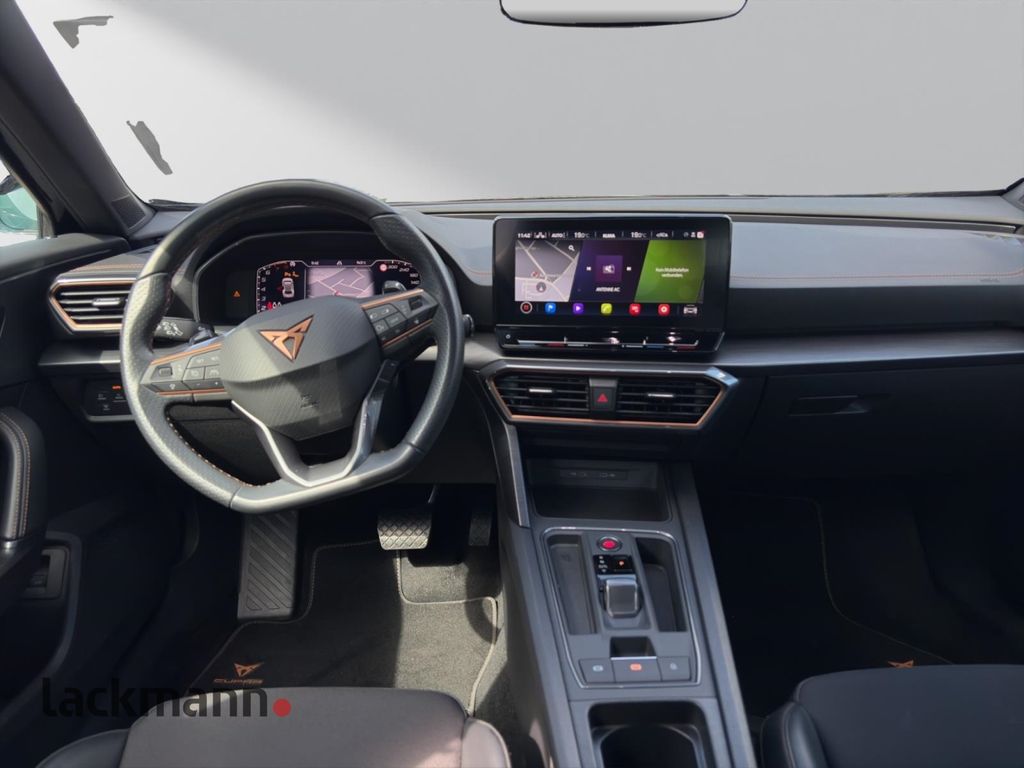 - Weiteres: Antriebs-Schlupfregelung (ASR), Leuchtweitenregelung automatisch, Sitzbezug / Polsterung: Stoff, Reifen-Reparaturset, Isofix-Aufnahmen für Kindersitz an Rücksitz, Getriebe 7-Gang - Doppelkupplungsgetriebe DSG, Rücksitzlehne geteilt/klappbar (1/3-2/3), Notrufsystem, Nebelscheinwerfer LED mit Abbiegelicht, Rücksitzlehnen umklappbar mit Fernentriegelung im Kofferraum, Schadstoffarm nach Abgasnorm Euro 6d, USB-Schnittstelle vorn (2-fach, Typ C), Seitenairbag vorn mitte (Central Airbag), Lenkrad heizbar (Sport/Leder) mit Multifunktion und Schaltfunktion, Scheinwerfer Voll-LED, Schließ-/Startsystem Kessy Advanced, Rückfahrkamera, Heckklappe/-Deckel elektr. betätigt (öffnen + schliessen, sensorgesteuert), Außenspiegel elektr. verstell-, heiz- und anklappbar, Spiegelabsenkung, Welcome Light, Memory, LM-Felgen 8x19 (Exclusive I, schwarz / silber, glanzgedreht), Ambiente-Beleuchtung Smart Ambient Light / Plus, Audio-Navigationssystem mit Touchscreen Farbbildschirm, Sitz vorn links elektr. verstellbar (mit Memory), Airbag Fahrer-/Beifahrerseite, Anti-Blockier-System (ABS), Tagfahrlicht LED, Wegfahrsperre (elektronisch), Kopf-Airbag-System, Gepäckraumabdeckung / Rollo, Licht- und Regensensor, Reifenkontroll-Anzeige, Seitenairbag, Dachreling schwarz, hochglänzend, Heckleuchten LED mit dynamischem Blinklicht, Mittelkonsole vorn mit Mittelarmlehne, Becherhalter, Ablagebox und Luftausströmer hinten, USB-Ladeanschlüsse (2-fach, Typ C) für 2.Sitzreihe, Heckleuchten Voll-LED mit dynamischem Lichtband (Infinite Light), Metallic-Lackierung, Antriebsart: Frontantrieb, Automatische Distanzregelung (ACC), Beifahrerairbag abschaltbar, Blinkleuchten LED in Außenspiegel integriert, Bluetooth-Schnittstelle mit Freisprecheinrichtung, Climatronic 3-Zonen, Einstiegsleisten (Aluminium) vorn, beleuchtet, Elektron. Differentialsperre (XDS), Elektron. Stabilitätskontrolle (ESC), Fahrassistenz-Paket XL, Fahrassistenz-Paket: Stau- und Notfallassistent, Fahrassistenz-Paket: Travel Assist, Fahrprofilauswahl (CUPRA Drive Profile), Fensterheber elektrisch vorn und hinten mit Komfortschaltung, Fernlichtassistent, Frontkamera, getönte Scheiben - Privacy Glass, Innenspiegel mit Abblendautomatik, Kombiinstrument digital (virtual cockpit), Laderaumboden variabel, Lendenwirbelstütze elektr. verstellbar, Licht- und Sicht-Paket, Lichtassistent (Coming Home, Leaving Home), Mittelarmlehne hinten, Motor 1,5 Ltr. - 110 kW 16V TSI ACT, Müdigkeitserkennung, Parkbremse elektrisch, Pre-Crash-System, Radioempfang digital (DAB+), Servolenkung elektro-mechanisch, Sitzheizung vorn, Sitzhöhenverstellung, Sitzhöhenverstellung Fahrersitz, Sport-Schalensitze vorn, Spurhalteassistent, Start/Stop-Anlage, Totwinkel-Assistent mit Auspark-Assistent, Spurwechselassistent und Ausstiegswarnung, Umfeldbeobachtungssystem (Front assist) mit City-Notbremsfunktion, Verkehrszeichenerkennung, Wärmeschutzverglasung, Winter-Paket, ZV mit Fernbedienung