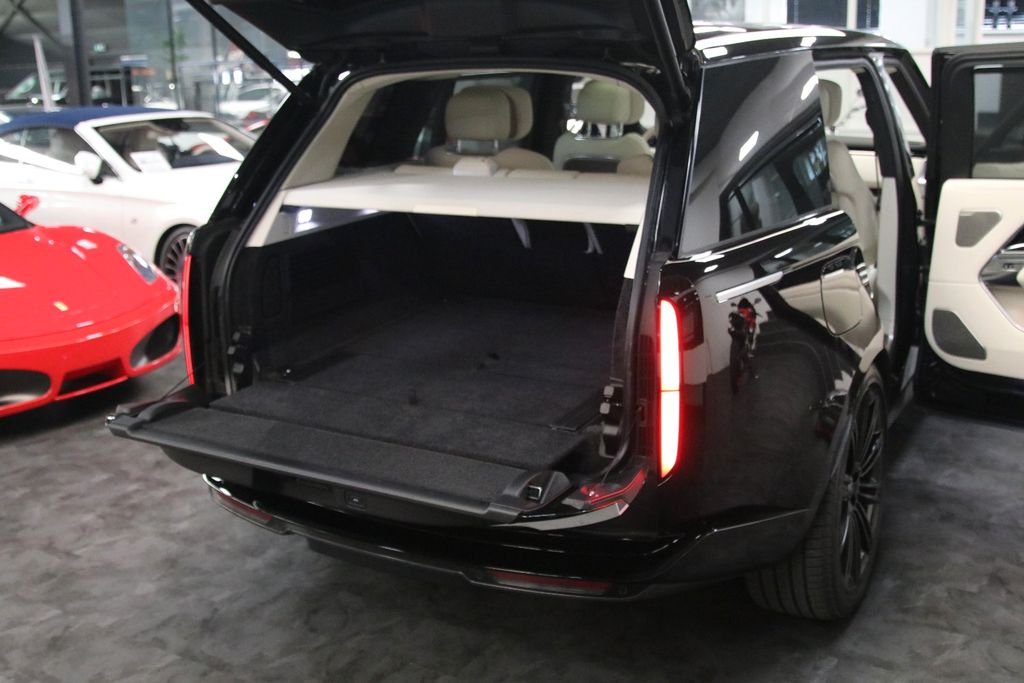 3. Bremsleuchte, Adaptive Geschwindigkeitsregelanlage (ACC) mit Lenk-Assistent, Adaptive Geschwindigkeitsregelanlage (ACC) mit Stop&Go-Funktion und Lenkassistent, Aktive Sicherheitsgurte, Alarmanlage perimetrisch, Allradlenkung, Allwetter-/ Ganzjahresreifen, Ambiente-Beleuchtung, Anhänger-Stabilisierungs-Programm, Antriebsstrangtrennung Vorderachse, Audiosystem: Meridian Sound-System (1600 Watt, 35 Lautsprecher, Subwoofer), Automatische Einstiegsabsenkung, Außenspiegel elektr. verstell-, heiz- und anklappbar, mit Abblendautomatik und Umfeldleuchte, Außenspiegel mit Warnsystem Totwinkel, Blinkleuchten mit Lauflicht, Blinkleuchten mit Lauflicht vorn, Bluetooth-Schnittstelle, Bremssättel schwarz lackiert, Dach Wagenfarbe, Dachhimmel SV Bespoke Build Leder zweifarbig, Digital LED-Scheinwerfer mit LED-Signatur und Bildprojektoren, Einparkhilfe vorn und hinten, Einschaltautomatik für Fahrlicht, Einstiegsleisten mit Schriftzug beleuchtet, Elektr. Bremskraftverteilung, Fahrassistenz-System: Adaptive Fahrwerksregelung (Adaptive Dynamics), Fahrassistenz-System: All-Terrain Progress Control (ATPC), Fahrassistenz-System: Anfahrhilfe (Low Traktion Launch), Fahrassistenz-System: Antriebsmomentkontrolle (Torque Vectoring), Fahrassistenz-System: Aufmerksamkeits-Assistent, erweitert (DCR), Fahrassistenz-System: Autonomer Notbrems-Assistent, Fahrassistenz-System: Bergabfahrkontrolle (HDC), Fahrassistenz-System: Berganfahr-Assistent, Fahrassistenz-System: Fernlichtassistent (Intelligent Light System), Fahrassistenz-System: Kollisionswarnsystem Heck (Rückfahr-Assistent / Querverkehrs-Assistent), Fahrassistenz-System: Kollisionswarnsystem hinten, Fahrassistenz-System: Off-Road-Fahrprogramm, Fahrassistenz-System: Park-Assistent, Fahrassistenz-System: Spurhalteassistent (Lane Departure Warning), Fahrassistenz-System: Tiefenmessung bei Wasserdurchfahrten (Wade Sensing), Fahrassistenz-System: Totwinkel-Assistent mit Spurhalteassistent, Fahrassistenz-System: Verkehrszeichenerkennung (Traffic Sign Recognition), Fahrassistenz-System: Verkehrszeichenerkennung mit Adaptiver Geschwindigkeits-Begrenzeranlage, Frontscheibe Akustikglas, Frontscheibe wärmeabweisend, Gepäck-/Laderaumboden variabel, Head-up-Display, Heckklappe/-Deckel elektr. betätigt (öffnen + schliessen, sensorgesteuert), Heckleuchten LED, Heckscheibe heizbar, Heckscheibenwischer, InControl Remote Premium (Onlinedienste / Apps), InControl Wi-Fi (WLAN-Hotspot), Infotainment-System: Pivi Pro, Innenausstattung: Dekoreinlagen SV Bespoke Build Natural Brown Walnut mit Intarsien, Innenausstattung: Designelemente Noble Chrome, Innenausstattung: Interieur Ebony, Innenspiegel, digital (Smart View Mirror), Instrumentenanzeige TFT-Farbdisplay (12 Zoll), Ionisator zur Luftreinigung Pro mit 2.5 PM Filter, Isofix-Aufnahmen für Kindersitz, Karosserie: 5-türig, Klimaautomatik 4-Zonen, Kurvenbremskontrolle (Corner-Brake-Control, CBC), Kühlerjalousie, regelbar (Airpanel), Laderaumabdeckung, elektrisch, Leder-Paket, Erweiterte Ausstattung, SV Bespoke Build, Lenkrad heizbar, Lenksäule (Lenkrad) elektr. verstellbar, Luftqualitätssensor, Mittelkonsole mit Armlehne, Mobiltelefon Schnittstelle mit kabelloser Ladefunktion, mit Signalverstärker, Motor 3,0 Ltr. - 258 kW Turbodiesel Mild-Hybrid, Nebelschlussleuchten (2), Panorama-Schiebedach elektrisch, Parkbremse elektrisch, Pedale Edelstahl-Design, Radioempfang digital (DAB+), Radstand 3197 mm, Reifen-Reparaturkit, Reifendruck-Kontrollsystem, Schadstoffarm nach Abgasnorm Euro 6d, Scheibenwaschdüsen heizbar, Seitenscheiben hinten Verbundglas, Seitenscheiben vorn Verbundglas, Service-System: Amazon Alexa, Servolenkung elektro-mechanisch, Sitzbezug / Polsterung: Leder Semianilin perforiert (Ebony), Sitze vorn elektr. verstellbar (24-fach, mit Memory und Massagefunktion) Sitze hinten Business Class, Smartphone kabellose Schnittstelle (Apple CarPlay & Android Auto), Soft-Close-Automatik für Türen, Sonnenblende rechts mit Spiegel, zweiteilig (beleuchtet), Sonnenblenden an Seitenscheiben hinten, elektrisch, Sperrdifferential (Hinterachse), Sprachsteuerung System, Start-Stop-Knopf (Start/Stop-Anlage ohne Schlüssel), Start/Stop-Anlage, Surround-Kamerasystem, Teppich-Fußmatten Premium, Teppichboden (Ebony), Terrain-Response-System 2, Touchscreen-Farbdisplay (13,1 Zoll), Traktionskontrolle, Türgriffe außen ausfahrbar / versenkbar, USB-Anschluss in Mittelkonsole, USB-Anschluss Mittelkonsole hinten, Verteilergetriebe zweistufig (Untersetzungsgetriebe), Wankneigungskontrolle (Roll Stability Control, RSC)