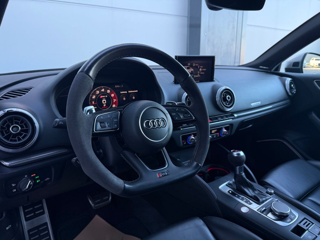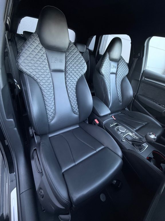 Ablage- und Gepäckraum-Paket, Adaptives Bremslicht, Airbag Fahrer-/Beifahrerseite, Antriebs-Schlupfregelung (ASR) mit EDS, Audi Drive Select, Bremsassistent, Bremssättel Schwarz lackiert, Dachhimmel Stoff, Dachkantenspoiler, Einparkhilfe vorn und hinten, akustisch und optisch mit selektiver Anzeige (APS Plus), Einstiegsleisten mit Aluminiumeinlage und Schriftzug, beleuchtet, Fahrassistenz-System: Bremsassistent (Folgekollision), Fahrer-Informations-System (FIS) mit Farbdisplay, Fußmatten Velours, Gepäckraumabdeckung / Rollo, Heckleuchten LED mit dynamischem Blinklicht, Innenausstattung: Aluminium-Optik, Innenausstattung: Dekoreinlagen 3D-Optik Luv, Isofix-Aufnahmen für Kindersitz, Karosserie: 4-türig, Kombiinstrument elektronisch, Komfort-Klimaautomatik 2-Zonen, Kopf-Airbag-System (Sideguard), Kotflügelverbreiterung, Lenkrad (Sport/Leder - 3-Speichen, unten abgeflacht) mit Multifunktion und Schaltfunktion, Licht-Paket, Motor 2,5 Ltr. - 294 kW 20V TFSI, Otto-Partikelfilter (OPF), Pedale und Fußstütze in Edelstahl, Progressivlenkung, Reifen-Reparaturkit, Reifenkontroll-Anzeige, RS-Frontstoßfänger Sport-Design, Schadstoffarm nach Abgasnorm Euro 6d-TEMP, Schalt-/Wählhebelgriff Alcantara / Mikrofaser, Seitenairbag vorn, Sport-Fahrwerk S / RS spezifisch, Start/Stop-Anlage, Stoßfänger Sport-Design (S-line), Stoßfänger Sport-Design mit Diffusoreinsatz hinten, Universal-Schnittstelle Bluetooth, Wärmeschutzverglasung grün getönt