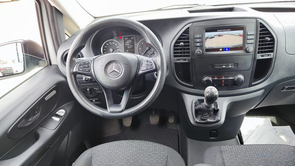 3. Bremsleuchte, Adaptives Bremslicht, Airbag Beifahrerseite, Airbag Fahrerseite, Anfahrhilfe (Berganfahr-Assistent), Anzeige für Waschwasserstand, Auflastung auf 3,1 t, Außenspiegel asphärisch, beide, Außenspiegel elektr. verstell- und heizbar, beide, Außentemperaturanzeige, Befestigungsschienen für Dachträger, BlueEfficiency-Paket, Bodenbelag: Fahrgastraum TPO, Bremsassistent, Bremssystem mit ABS+ASR, Deckenleuchte im Laderaum, Design- und Ausstattungslinie PRO, Einschaltautomatik für Fahrlicht, Einstiegsgriff hinten, Fahrassistenz-System: Anfahr-Assistent (Berganfahr-Assistent), Fahrassistenz-System: Attention-Assist (Müdigkeitserkennungs-Sensor), Fahrassistenz-System: Pannenmanagement, Fahrassistenz-System: Seitenwind-Assistent, Fenster für hintere Türen / Heckklappe mit Wisch-/Waschanlage, Fenster im Lade-/FG-Raum: - feststehend, hinten, Fenster im Lade-/FG-Raum: - feststehend, vorn links, Fenster im Lade-/FG-Raum: - feststehend, vorn rechts, Frontscheibe mit Scheibenantenne, Generator 185 A, Getriebe 6-Gang - FSG, Getränkehalter vorn, Gurtstraffer, Haltegriff Beifahrerseite, Haltegriffe im Fond, Handschuhfach abschließbar, Harnstofftank (AdBlue): 24 Ltr., Heckklappe mit Verglasung, Heckscheibe heizbar, Heckscheibenwischer, Innenverkleidung gehobene Ausführung, Karosserie/Aufbau: Kombi Standard, Karosserie/Aufbau: lang, Kindersicherung, Kommunikationsmodul (LTE) für digitale Dienste, Kopf-Airbag-System (Windowbag), Kopf-Schulter-Airbag (Thoraxbag) Fahrer-/Beifahrerseite, Lenkrad (Lenksäule mech. verstellbar), Mercedes-Benz Notrufsystem, Modellpflege, Motor 1,7 Ltr. - 75 kW CDI KAT, Nebelschlussleuchte, PKW-Zulassung, Pro, PTC Heater, Radstand 3200 mm, Reifendruck-Kontrollsystem, Rückspiegel innen, Schadstoffarm nach Abgasnorm Euro 6d-TEMP, Scheibenwischer mit Regensensor, Schiebetür Lade-/Fahrgastraum rechts mit Verglasung, Sicherheitsgurt-System mit Warnanlage (Fahrer-/Beifahrerseite), Sitzbezug / Polsterung: Stoff, Sitze im Lade-/FG-Raum: 1.Reihe, 3er-Sitzbank, Klappsitz außen, Sitze im Lade-/FG-Raum: 2.Reihe, 3er-Sitzbank, Vorbereitung für DAB Radioempfang, Warmluftkanal zum Lade-/Fahrgastraum, Wartungsintervall-Anzeige Assyst, Wärmeschutzverglasung