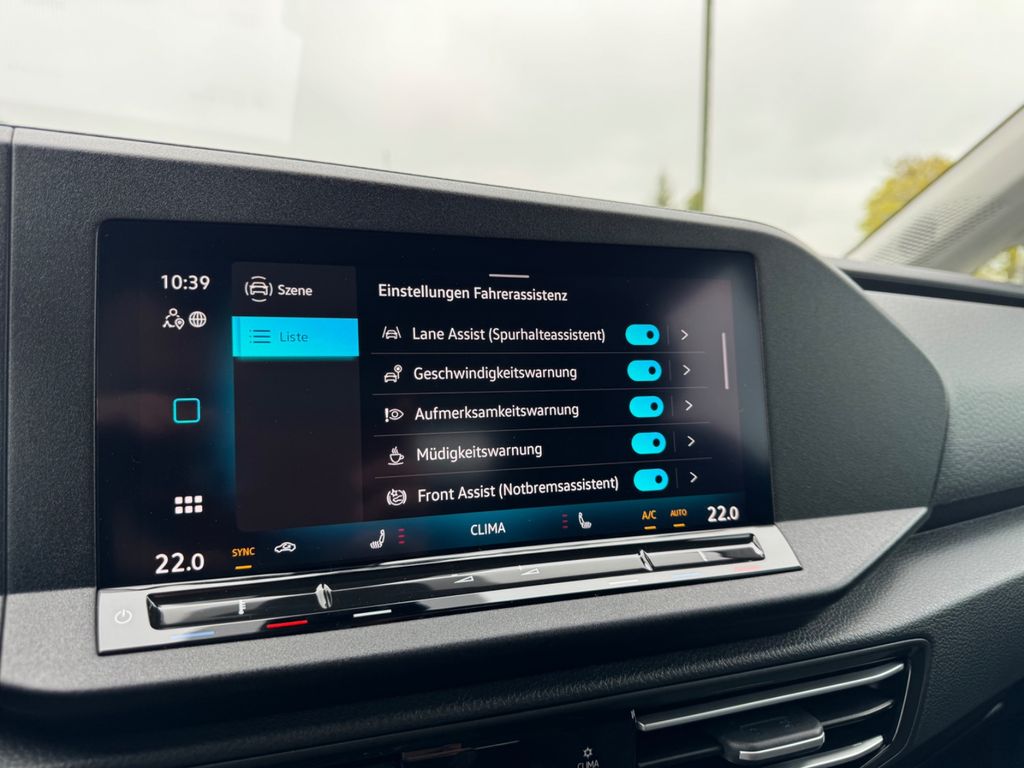 Abfallbehälter, Ablagefächer in Dachkonsole, Airbag Fahrer-/Beifahrerseite, Beifahrerairbag abschaltbar, Audiosystem: Vorbereitung für spätere Freischaltung Navigationsfunktion, Ausstattung Life, Automatische Fahrlichtschaltung (ALS), Außenspiegel elektr. verstell- und heizbar, Außenspiegel schwarz lackiert, Türgriffe außen Wagenfarbe, Abdeckung Schiebetürleiste silber, Bodenbelag hinten (Teppich), Bodenbelag vorn (Teppich), Dachreling, Digital Cockpit Basis, Elektron. Stabilitäts-Programm (ESP) Bremsassistent, ASR/ABS, EDS, MSR, Fahrassistenz-System: Abbiegebremsfunktion und Ausweichunterstützung, Fahrassistenz-System: Ablenkungs- und Müdigkeitserkennung, Fahrassistenz-System: Multikollisionsbremse (Multi Collision Brake), Fahrassistenz-System: Spurhalteassistent (Lane Assist), Fahrassistenz-System: Umfeldbeobachtungssystem (Front assist) mit City-Notbremsfunktion, Fahrassistenz-System: Verkehrszeichenerkennung, Frontkamera (Multifunktionskamera Frontscheibe), Funkschlüssel (2) klappbar, Gepäckraumabdeckung / Rollo, Geschwindigkeitsbegrenzer mit vorausschauender Geschw.-Regelung, Handschuhfach mit Klappe, beleuchtet, Heckklappe mit Verglasung, Heckleuchten Standard, Heckscheibe heizbar, Heckscheibenwischer, Innenausstattung: Dekoreinlagen matt, Innenspiegel abblendbar, Isofix-Aufnahmen für Kindersitz an Rücksitze (inkl. i-Size-Kindersitze), Karosserie: 5-türig, Kindersicherung im Fahrgastraum elektr. betätigt, Klapptische in Fahrer- und Beifahrersitzlehne integriert, Lautsprecher (6), Lendenwirbelstützen vorn, Lenksäule (Lenkrad) mechan. verstellbar, Höhen-/Längsverstellung, Leseleuchten hinten LED, Leuchtweitenregelung, Luftzusatzheizung elektrisch, Mittelarmlehne vorn höhen-/längsverstellbar, Ablagefach, Luftausströmer hinten, Mobile Online Dienste Vorbereitung We Connect und We Connect Plus, Motor 2,0 Ltr. - 90 kW TDI, Multimedia-Schnittstelle USB (Typ C) vorn und USB-Ladeanschluß hinten mit erhöhter Ladeleistung, Notrufsystem, Parkbremse elektrisch mit Auto-Hold-Funktion, PKW-Zulassung, Radioempfang digital (DAB+), Radstand 2970 mm, Reifen-Reparaturkit (Tire Mobility Set), Reifenkontroll-Anzeige, Schadstoffarm nach Abgasnorm Euro 6e, Scheibenwischer mit Intervallschaltung und Lichtsensor, Schiebetür links, Schiebetür rechts, Schublade / Ablagefach unter Sitze vorn, SCR-System (AdBlue-Technologie), Seitenairbag vorn mit Center-Airbag, Kopf-Airbag-Einheit vorn und hinten, Seitenfenster im Lade-/Fahrgastraum hinten links, fest, Seitenfenster im Lade-/Fahrgastraum hinten rechts, fest, Seitenfenster im Lade-/Fahrgastraum vorn links, fest, Seitenfenster im Lade-/Fahrgastraum vorn rechts, fest, Sicherheitsgurte hinten außen mit Gurtstraffer, Sicherheitsgurte vorn mit Gurtstraffer, höhenverstellbar, Sitz vorn rechts mit Lehnenentriegelung, Sitz-Paket 7-Sitzer, Sitzbezug / Polsterung: Stoff Trialog, Sitze vorn höhenverstellbar, Sonnenblenden mit Spiegel, Start/Stop-Anlage, Steckdose 12V im Koffer-/Laderaum, Stoßfänger Wagenfarbe, Türdichtungen mit Staubschutz, Türverkleidung Kunststoff, Armauflage in Stoff, Verbandkasten und Warndreieck, Verkleidung im Lade-/FG-Raum: Komfort, Verzurrösen im Gepäck-/Laderaum, Vorbereitung für Alkohol-Wegfahrsperre (Alcolock), Vorbereitung Onlinedienste, Warnanlage für Sicherheitsgurte vorn und hinten, Wärmeschutzverglasung grün getönt (seitlich / hinten)