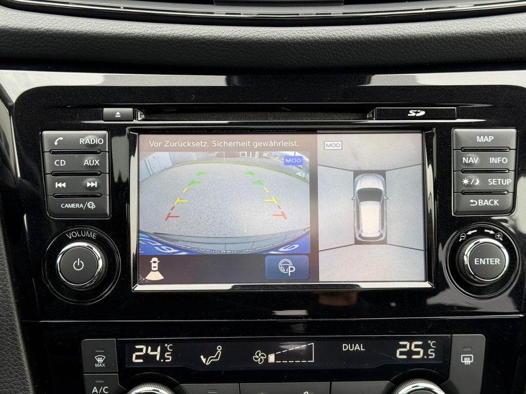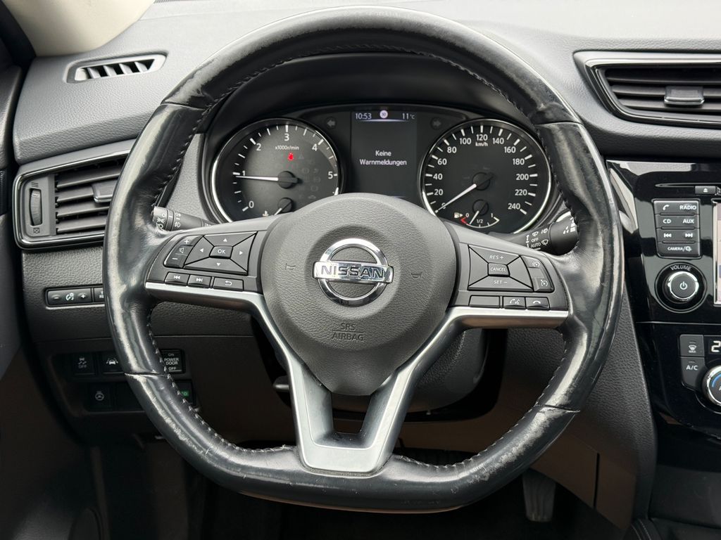 3. Bremsleuchte, Airbag Beifahrerseite abschaltbar, Airbag Fahrer-/Beifahrerseite und Seitenairbag vorn, Audio-/Bordcomputerbedienung am Lenkrad, Audiosystem: Radio/CD-Player mit 6 Lautsprecher, Ausstattungs-Paket: Nissan Connect mit Around View Monitor, Automatische Fahrlichtschaltung, Außenspiegel elektr. verstell- und heizbar, Bordcomputer, Bremsassistent (Nissan Brake-Assist), Coming-Home-Lichtfunktion (Friendly Lightning), Einparkhilfe, Fahrassistenz-Paket Acenta, Fahrassistenz-System: Aktive Fahrkomfortregelung (Fahrwerksdämpfung), Fahrassistenz-System: Aktive Motorbremse, Fahrassistenz-System: Berganfahr-Assistent, Fahrassistenz-System: Kurvenbremskontrolle (Aktive Spurkontrolle), Fensterheber elektrisch vorn + hinten, Fernentriegelung Tankklappe, Freisprechanlage Bluetooth, Frontscheibe Verbundglas, Gurtstraffer, Heckscheibe heizbar, Innenspiegel mit Abblendautomatik, Isofix-Aufnahmen für Kindersitz, Karosserie: 5-türig, Kindersicherung, Klimaautomatik 2-Zonen, Komfortsitz vorn links, Komfortsitz vorn rechts, Kopf-Airbag-System, Kopfstützen vorn verstellbar, Lenksäule (Lenkrad) höhen-/längsverstellbar, Leseleuchte vorn, Mittelarmlehne hinten mit Getränkehalter, Motor 2,0 Ltr. - 130 kW dCi Diesel KAT, Nebelschlussleuchte, Parkbremse elektrisch, Radstand 2706 mm, Reifen-Reparaturset, Reifendruck-Kontrollsystem, Rücksitzbank verschiebbar, Schadstoffarm nach Abgasnorm Euro 6, Schalt-/Wählhebelgriff Leder, Schaltpunktanzeige, Sitz vorn links höhenverstellbar, Sitzausstattung: 5-Sitzer, Sitzbezug / Polsterung: Stoff, Sitzheizung vorn, Sonnenblenden mit Spiegel (beleuchtet), Start/Stop-Anlage, Steckdose (12V-Anschluß) in Mittelkonsole, Style-Paket, Türgriffe außen verchromt, USB-Schnittstelle, Verglasung hinten abgedunkelt, Wärmeschutzverglasung mit UV-Schutz