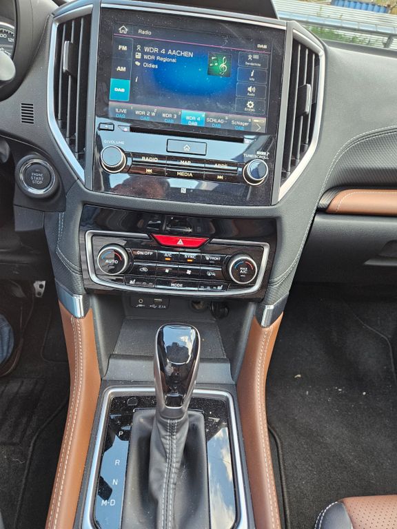 Weitere Ausstattung:Airbag Fahrer-/Beifahrerseite, Airbag Fahrer-/Beifahrerseite und Seitenairbag vorn, Akustischer Fußgängerschutz (Außensound), Anhänger-Stabilisierungs-Programm, Armauflage vorn, Audiosystem: Harman-Kardon, Auspuffblende (Edelstahl), Automatische Fahrlichtschaltung / Lichtsensor, Außenspiegel elektr. anklappbar, Außenspiegel elektr. verstellbar, Außenspiegel heizbar, Außenspiegel mit Einparkfunktion/Rückwärtsparkhilfe, Außenspiegel mit Kamera, rechts, Außenspiegel silber, Außentemperaturanzeige, Blinkleuchten LED in Außenspiegel integriert, Bremsassistent, Dachantenne, Dachreling silber, Elektron. Stabilitäts-Programm (ESP), Fahrassistenz-System: aktiver Spurhalteassistent, Fahrassistenz-System: Aufmerksamkeits-Assistent (Müdigkeitserkennungs-Sensor), Fahrassistenz-System: Bergabfahrhilfe, Fahrassistenz-System: Berganfahrhilfe, Fahrassistenz-System: EyeSight, Fahrassistenz-System: Fahrer-Erkennung (Driver Monitoring System), Fahrassistenz-System: Fernlichtassistent, Fahrassistenz-System: Frontkollisionswarnung, Fahrassistenz-System: Kollisionswarnsystem hinten, Fahrassistenz-System: Notbrems-Assistent, Fahrassistenz-System: Querverkehrs-Assistent, Fahrassistenz-System: Sicherheitssystem mit automatischem Notruf (ERA GLONASS / eCall), Fahrassistenz-System: Spurhalteassistent (Lane Assist), Fahrassistenz-System: Spurwechselassistent, Fahrassistenz-System: Totwinkel-Assistent, Fahrer-Informations-System (FIS) mit Farbdisplay, Fensterheber elektrisch vorn + hinten, Gepäck-/Laderaumleuchte, Gepäckraumabdeckung / Rollo, Geschwindigkeits-Begrenzeranlage, Geschwindigkeits-Regelanlage (Tempomat) mit Abstandsregelung, Getränkehalter, Gurtstraffer, Heckklappenöffnung elektrisch, Heckleuchten LED, Heckscheibe heizbar, Heckspoiler schwarz lackiert, Infotainment-System: SUBARU STARLINK, Innenausstattung: Interieurleisten Silber, Innenspiegel mit Abblendautomatik, Isofix-Kindersitz-System, Karosserie: 5-türig, Kennzeichenbeleuchtung LED, Kindersicherung, Klimaautomatik 2-Zonen, Knieairbag Fahrerseite, Kopf-Airbag-System (Windowbag), Kopfstützen verstellbar, Kühlergrill schwarz, Kühlerjalousie, Aktiv, Lenkrad heizbar, Lenksäule (Lenkrad) höhenverstellbar, Lenksäule (Lenkrad) längsverstellbar, Leseleuchte, LM-Felgen, Luftdüsen hinten, Mittelarmlehne hinten, Mittelkonsole, Modellpflege, Motor 2,0 Ltr. - 110 kW Mild-Hybrid, Navigationssystem, Nebelscheinwerfer LED, Nebelschlussleuchte LED, Niveauregulierung, Notbrems-Warnblinkautomatik, Otto-Partikelfilter (GPF), Parkbremse elektronisch, Pedale Aluminium, Radstand 2670 mm, Reifen-Reparaturset, Reifendruck-Kontrollsystem, Rückfahrkamera, Rücksitzlehne geteilt / klappbar, Rücksitzlehne mit Fernentriegelung umklappbar, Rücksitzlehnen neigungsverstellbar, Schadstoffarm nach Abgasnorm Euro 6d, Schalt-/Wählhebelgriff Leder, Schaltfunktion (Schaltwippen/-tasten) am Lenkrad, Scheibenwaschanlage, Scheibenwaschanlage hinten, Scheibenwischerenteiser vorn, Scheinwerfer LED mit dynamischem Kurvenlicht, Schiebe-/Hebedach elektrisch (Glas), Seitenairbag vorn, SI-Drive, Sitz vorn links elektr. verstellbar (8-fach, mit Memory), Sitz vorn rechts elektr. verstellbar (8-fach), Sitzbezug / Polsterung: Leder / Kunstleder, Sitzheizung hinten, Sitzheizung vorn, Sonderlackierung Ice-Silver-Metallic, Sonnenblenden mit Spiegel (beleuchtet), Sprachbediensystem Spracherkennung, Stabilitäts-Programm X-Mode, Start-Stop-Knopf, Start/Stop-Anlage, Steckdose (12V-Anschluß) im Handschuhfach, Steckdose (12V-Anschluß) im Koffer-/Laderaum, Steckdose (12V-Anschluß) in der Mittelkonsole, Stoßfänger Wagenfarbe, Tagfahrlicht LED, Türgriff außen Wagenfarbe, Türgriffe innen verchromt, Türverriegelung automatisch, USB-Anschlüsse (2) hinten, Verglasung getönt, Verglasung hinten abgedunkelt