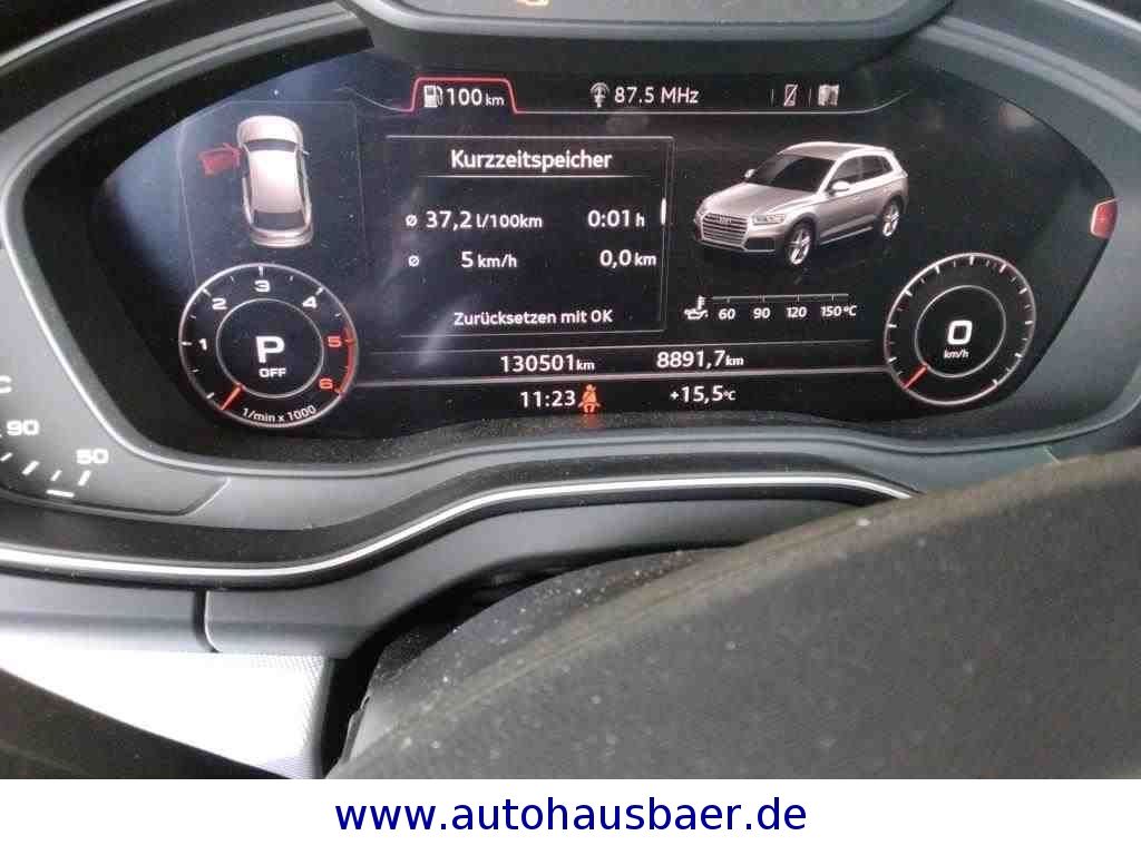Sonderausstattung:Assistenz-Paket Stadt, Assistenz-Paket Tour, Audi connect (Notruf- und Assistance-System), Audi Smartphone Interface, Außenspiegel elektr. verstell-, heiz- und anklappbar, mit Abblendautomatik, Bluetooth-Freisprecheinrichtung mit Spracherkennung (Audi Phone Box), Dachhimmel Stoff, schwarz, Frontkamera (Scheibe), Gepäckraumklappe elektr. betätigt (öffnen + schliessen), Innenspiegel mit Abblendautomatik, Isofix-Aufnahmen für Kindersitz an Beifahrersitz, Kombiinstrument digital (virtual cockpit), Komfort-Klimaautomatik 3-Zonen, Kraftstofftank: 70 Ltr., Lendenwirbelstützen vorn, elektr. verstellbar, Lenkrad (Leder - 3-Speichen) mit Multifunktion plus, Metallic-Lackierung, Multi-Media-Interface MMI Navigation Plus mit MMI Touch, Panoramadach vorn elektrisch, hinten fest, Seitenairbag hinten, Sitzbezug / Polsterung: Kunstleder / Leder, Sitze vorn elektr. verstellbar, Sitzheizung vorn, Sound-System DSP / Audi Sound-System, USB-Schnittstelle für Fondpassagiere, Verglasung hinten abgedunkelt (Privacyverglasung)