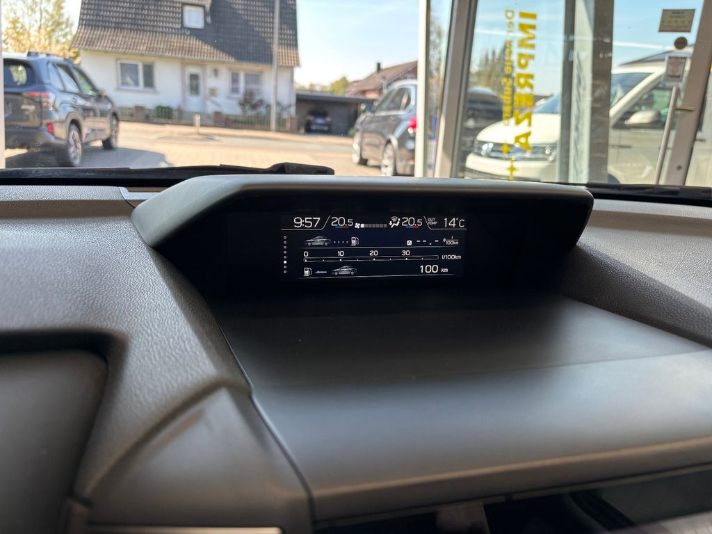 Airbag Fahrer-/Beifahrerseite und Seitenairbag vorn, Aufprallschutz rundum, Auto-Hold-Funktion, Automatische Fahrlichtschaltung / Lichtsensor, AUX-IN-Anschluss, Außenspiegel elektr. anklappbar, Außenspiegel elektr. verstell- und heizbar, Außenspiegel Wagenfarbe, Außentemperaturanzeige, Blinkleuchten LED in Außenspiegel integriert, Bluetooth-Schnittstelle, Bremsassistent, Dachantenne, Dachreling silber / schwarz, Fahrassistenz-System: aktiver Spurhalteassistent, Fahrassistenz-System: Antriebsmomentkontrolle (Torque Vectoring), Fahrassistenz-System: Bergabfahrhilfe, Fahrassistenz-System: Berganfahrhilfe, Fahrassistenz-System: EyeSight, Fahrassistenz-System: Fernlichtassistent, Fahrassistenz-System: Notbrems-Assistent, Fahrassistenz-System: Spurhalteassistent (Lane Assist), Fahrassistenz-System: Spurwechselassistent, Fahrer-Informations-System (FIS) mit Farbdisplay, Farbdisplay (8,0 Zoll), Fensterheber elektrisch vorn + hinten, Fernentriegelung Tankklappe, Gepäck-/Laderaumleuchte, Gepäckraumabdeckung / Rollo, Geschwindigkeits-Regelanlage (Tempomat) mit Abstandsregelung, Getränkehalter, Gurtstraffer, Handschuhfach beleuchtet, Heckscheibe heizbar, Heckspoiler, Infotainment-System: SUBARU STARLINK, Innenausstattung: Interieurleisten Silber, Innenspiegel mit Abblendautomatik, Isofix-Kindersitz-System, Karosserie: 5-türig, Kindersicherung, Klimaautomatik 2-Zonen, Knieairbag Fahrerseite, Kopf-Airbag-System (Windowbag), Kopfstützen verstellbar, Kühlergrill verchromt, Lenkrad heizbar, Lenkrad mit Multifunktion, Lenksäule (Lenkrad) höhenverstellbar, Lenksäule (Lenkrad) längsverstellbar, Leseleuchte, LM-Felgen, Mittelarmlehne hinten, Motor 2,0 Ltr. - 110 kW Mild-Hybrid, Nebelscheinwerfer LED, Parkbremse elektronisch, Pedale Aluminium, Radstand 2665 mm, Reifen-Reparaturset, Reifendruck-Kontrollsystem, Rückfahrkamera, Rücksitzlehne geteilt / klappbar, Schadstoffarm nach Abgasnorm Euro 6d, Schalt-/Wählhebelgriff Leder, Scheibenwaschanlage, Scheibenwaschanlage hinten, Scheibenwischerenteiser vorn, Scheinwerfer LED mit dynamischem Kurvenlicht, Sitz vorn links höhenverstellbar, Sitzbezug / Polsterung: Stoff/Kunstleder, Sitzheizung vorn, Sonnenblenden mit Spiegel (beleuchtet), Sprachbediensystem Spracherkennung, Stabilitäts-Programm X-Mode, Start-Stop-Knopf, Start/Stop-Anlage, Steckdose (12V-Anschluß) in der Mittelkonsole, Stoßfänger Wagenfarbe, Tagfahrlicht LED, Türgriff außen Wagenfarbe, Türgriffe innen verchromt, Verglasung getönt, Verglasung hinten abgedunkelt, Zeituhr (digital)