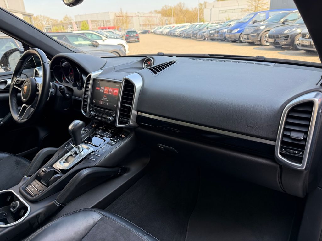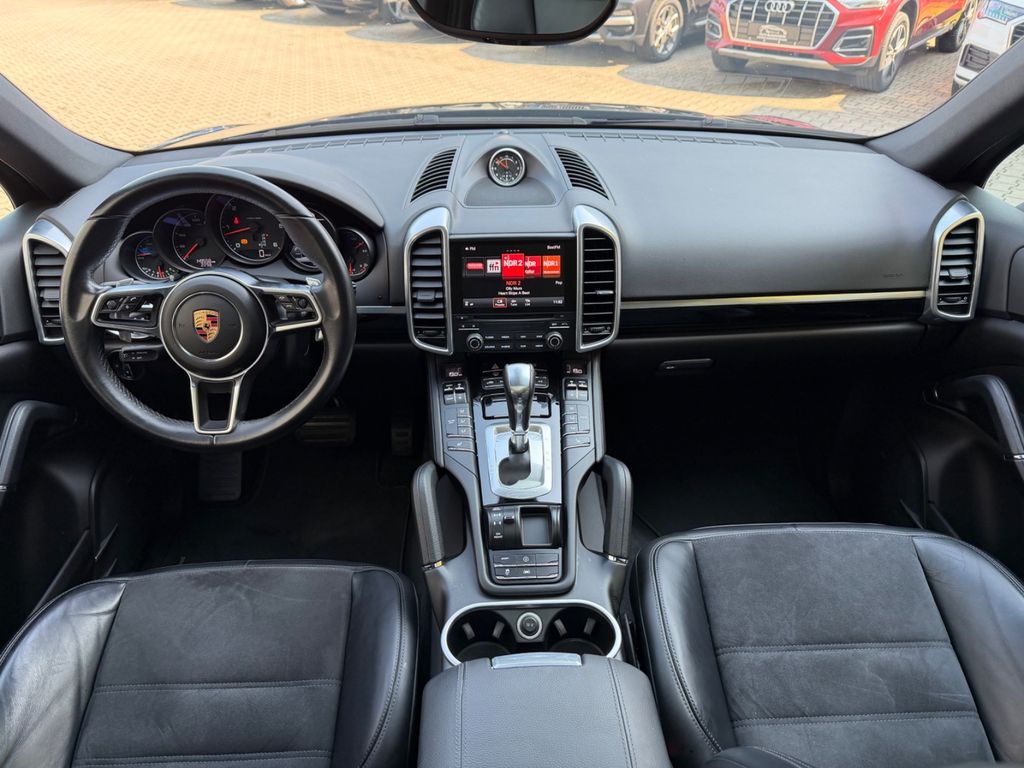 Dieser gepflegte Porsche Cayenne aus dem Jahr 2016 präsentiert sich in elegantem Schwarz mit schwarzem Alcantara-Interieur. Der 262 PS starke Diesel-SUV mit Allradantrieb bietet ein umfassendes Ausstattungspaket für höchsten Komfort und Sicherheit. Das Fahrzeug verfügt über eine Automatik-Schaltung und wurde stets scheckheftgepflegt von nur zwei Vorbesitzern. Die Euro 6-Klassifizierung und grüne Umweltplakette unterstreichen die Effizienz dieses kraftvollen Fahrzeugs. Besonders hervorzuheben sind das Panorama-Glasdach, die elektrische Heckklappe und das Sportpaket. Die 2-Zonen-Klimaautomatik sorgt für angenehmes Raumklima, während das Navigationssystem und das Touchscreen-Display moderne Konnektivität bieten. Für zusätzliche Sicherheit sorgen die umfangreichen Fahrassistenzsysteme wie Spurhalteassistent und Verkehrszeichenerkennung.- 3.0 Liter V6 Diesel mit 262 PS und Allradantrieb