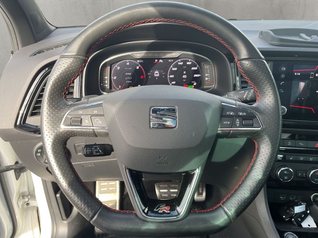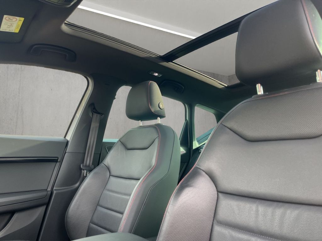 Climatronic mit Stauluftregelung, FCKW-frei, Nebelscheinwerfer, 2 Leseleuchten vorn,2 hinten, SBBR-Leuchte in LED-Technik, LED- Hauptscheinwerfer, Lendenwirbelstütze, manuell einstellbar in Vordersitzlehnen, Start/Stopp-Anlage mit Rekuperation, Fahrzeugklassen-Differenzierung -5FP-, Reifendruckkontrolle, Wegfahrsperre elektronisch, Außenspiegel elektrisch anklappbar-/ einstellbar, beheizbar, mit Beifahrerspiegelabsenkung, Innenleuchte im Fußraum vorn und hinten, Schalthebelknopf/-Griff in Leder, Mittelarmlehne vorn, Seitenairbag vorn, mit Kopfairbag, Airbag FS und BFS, Knieairbag auf FS undBFS, mit BFS-Deaktivierung, Fensterheber mit Komfortschaltung und Abschaltsicherung, elektrisch, Scheiben seitlich in Wärmeschutzver- glasung, ab B-Säule und hinten dunkel eingefärbt, Abgaskonzept, EU6 DG, Gepäckraumabdeckung, klappbar, Drei.-Automatikgurte vorn, Rücksitzbank ungeteilt, Lehne geteilt umlegbar mit Mittelarmlehne, Höheneinstellung,manuell,für Vordersitze, Kindersitzverankerung für Kindersitzsystem ISO FIX, Differenzialsperre ( XDS ) Dynamische Traktions Hilfe, Allradantrieb, Ledersportmultifunktionslenkrad mit Tiptronic, Dynamiklenkung, Elektronisches Stabilisierungsprogramm (ESP), -SEAT-Marken-/Klassen spezifische Merkmale, Einbau Differenzierung für Getriebe"DQ381" -- Fahrzeugteile --, Extern, Aux-In, USB Typ-A, 2x USB Buchseund Ladebuchse(n), Ambientelicht Ausführung 2, Sprachsteuerung, Radio Standard (Gen2), 7-Gang-Automatikgetriebe Allrad A7A, Müdigkeitserkennung, Sport-Ausstattung, 230V Wechselrichter und Steckdose für Europa, Komforttelefonie, Mirror Link plus Wireless RSE "App", Soundsystem mit Subwoofer "branded" Ausführung 2, Multifunktionsanzeige/Bordcomputer "FPK" Entry, Standheizung mit Funkfernbedienung, Scheinwerferreinigungsanlage, Automatische Distanzregelung (mit follow to stop) und Speed-Limiter, Scheibenwischer-Intervallschaltung mit Licht/Regensensor, Tagesfahrlicht mit Assistenzfahrlicht u.Coming- Leaving-home Funktion manuell, Fernlichtassistent, Spurhalte-, Stau-, Auspark-, Totwinkel (BSD) und Emergency Assistent, Parklenkassistent, Navigationsgerät-Standard, Front Assist, Außenspiegelgehäuse schwarz, Sicherheitsinnenspiegel automatisch abblendbar, Zentralverriegelung "Keyless-Entry" ohne Safesicherung, Frontscheibe in Wärmeschutzglas beheizbar, Komfortöffnung Heckklappe (Virtuelles Pedal), Sitzheizung für Vordersitze getrennt regelbar, Dachreling, schwarz, Angehobener Ladeboden hinten, Grossdach-System, Fahrprofilauswahl und hydr. Dämpferregelung, Anhängevorrichtung mechanisch schwenkbarund elektrisch auslösbar, Platzsparendes Notrad,Radial-Bauweise (5-Loch), Navigationssystem "Standard", Ledersitze in Schwarz (CUPRA: bis KW47/20 Ledersitze in Petrolblau), Sonderpreis, Komfortsitze vorn, Digitaler Radioempfang, Mit Verkehrszeichenerkennung, Mit Multifunktionskamera, Preisnachlass-Paket, 19"-Leichtmetallräder "Exclusive 36/1", bearbeitet, Brillantschwarz, Beheizbare Frontscheibe, nichtreflektierend, Panorama-Ausstelldach, elektrisch, Ablagen-Paket, Regen-/Lichtsensor, Innenspiegel automatisch abblendend, Coming- und Leaving-Home-Funktion (manuell), Programmierbare Innenheizung, DAB (Digital Audio Broadcasting), BeatsAudio: Premium-Lautsprecher, Subwoofer, 340 W-Verstärker und Surround-Technologie, FULL LINK für Navigationssystem, Einparkhilfe, Easy Open - Gepäckraumklappe mit sensorgesteuerter Öffnung, 18"-Reserverad als Notrad, Notfallwerkzeug, Wagenheber, Anhängevorrichtung, Frei konfigurierbares Kombiinstrument, 230-V-Wechselrichter und -Steckdose (im Gepäckraum)