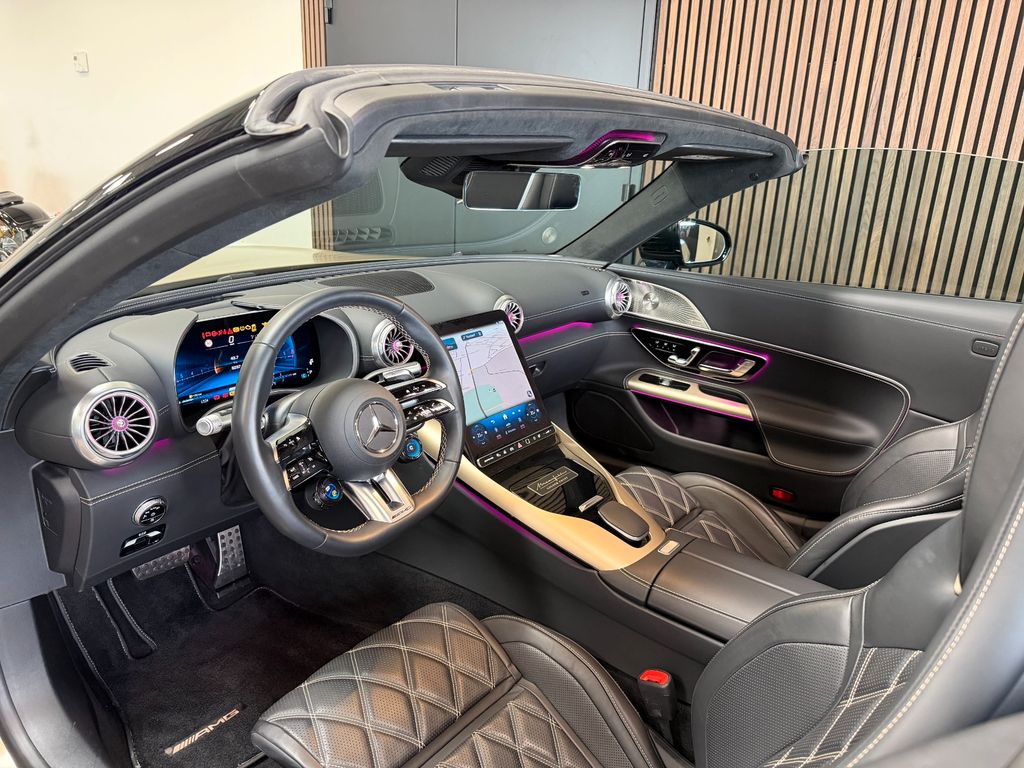 A Rolling Piece of ArtThis stunning roadster is finished in the breathtaking MANUFAKTUR Kalahari Gold Magno, perfectly complemented by 21" AMG wheels featuring gold accents and center-lock styling.A bold statement of exclusivity — and a direct tribute to the feeling of cruising along golden coastlines with the wind in your hair.