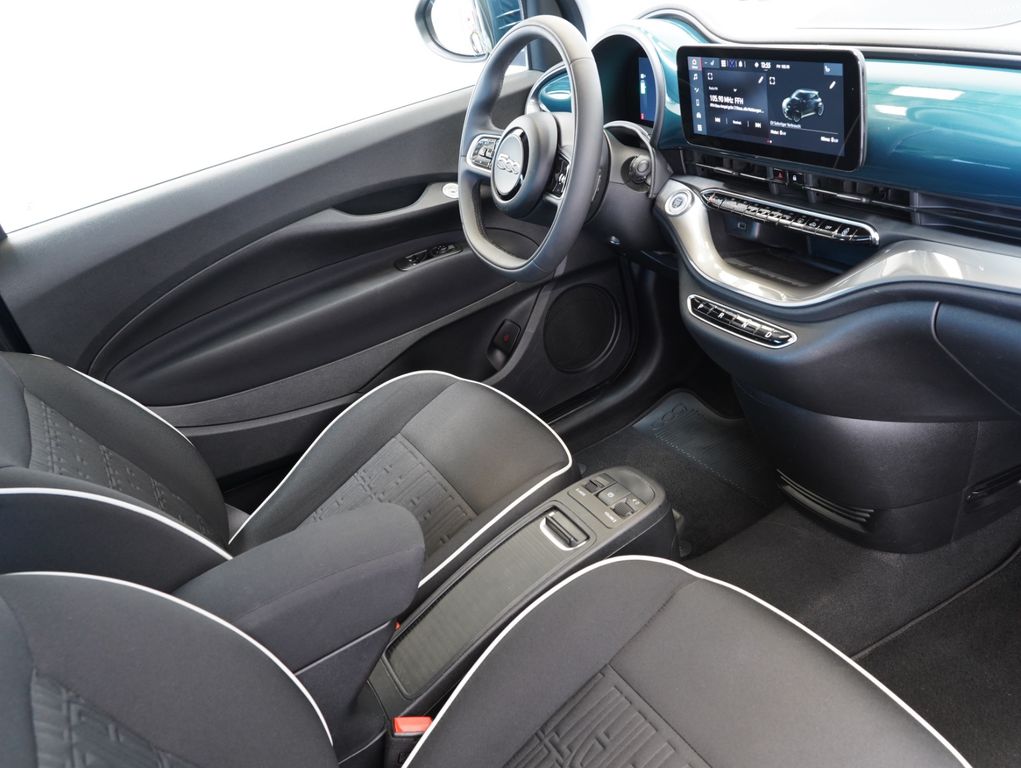 6 Lautsprecher, Airbag Fahrer-/Beifahrerseite, Antriebs-Schlupfregelung (ASR), Armaturenbrett farbig, Autom. Begleitfunktion der Beleuchtung (Follow me home), Außenspiegel Wagenfarbe, Beifahrerairbag abschaltbar, Einschaltautomatik für Fahrlicht / Lichtsensor, Elektromotor 87 kW (cont. 43 kW), Fahrassistenz-System: Aufmerksamkeits-Assistent, Fahrassistenz-System: Autonomer Notbrems-Assistent (AEB), Fahrassistenz-System: Bremsassistent, Fahrassistenz-System: Spurhalteassistent, Fahrassistenz-System: Verkehrszeichenerkennung, Fahrmodusschalter, Halterung Smartphone, Heckleuchten LED, Heckscheibe heizbar, HV-Batterie 42 kWh (Lithium-Ionen), DAB+ und Bluetooth-Freisprecheinrichtung (Touchscreen 10,25"), Instrumentenanzeige Farbdisplay, 7 Zoll, Karosserie: 3-türig, Klimaautomatik, Kopf-Airbag-System vorn, Kopf-Airbag-System vorn und hinten, Kopfstützen hinten, Ladekabel mit Typ 2-Stecker (Mode 3), Lenkrad mit Multifunktion, Lenksäule (Lenkrad) höhenverstellbar, Mobile Online Dienste UConnect Live, Nebelschlussleuchte, Notrufsystem (eCall), One Pedal Drive (elektronisches Gaspedal), Parkbremse elektrisch, Radioempfang digital (DAB+), Schnellladefunktion 85 kW (DC), Seitenairbag vorn, Seitenschutzleisten schwarz glänzend, Sitzbezug / Polsterung: Stoff, Sitzverstellung vorn links (4-fach), Sitzverstellung vorn rechts (4-fach), Smartphone Schnittstelle (Apple CarPlay & Android Auto), Sonnenblenden mit Spiegel (beleuchtet), Stahlfelgen 6x15, Steckdose (12V-Anschluß) vorn, Tagfahrlicht LED, USB-Schnittstelle, Wärmeschutzverglasung