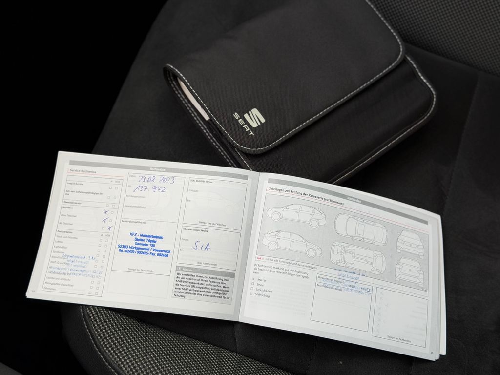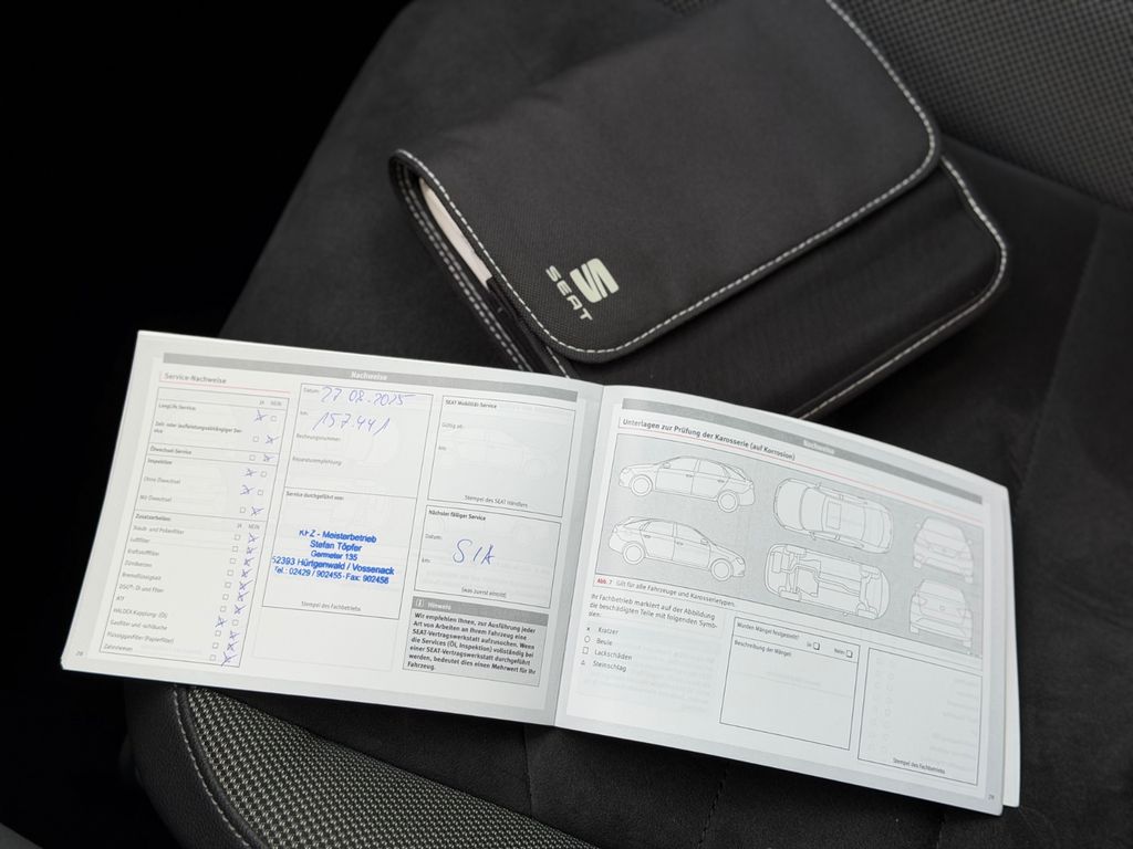 Sonderausstattung:Alcantara-Paket, Audio-Navigationssystem mit Touchscreen Farbbildschirm, Fahrassistenz-Paket 5, Fahrassistenz-System: Parklenkassistent, Full Link (MirrorLink, Apple CarPlay und Android Auto), Gepäckraum-Abtrennung (Netz), Heckklappe/-Deckel elektr. betätigt (öffnen + schliessen, sensorgesteuert), Induktionsladeschale für Smartphone, Kamerasystem Umgebungsansicht (Top View, 360°), Metallic-Lackierung, Radioempfang digital (DAB+), Schiebe-/Hebedach elektrisch (Glas), Sound-System SEAT