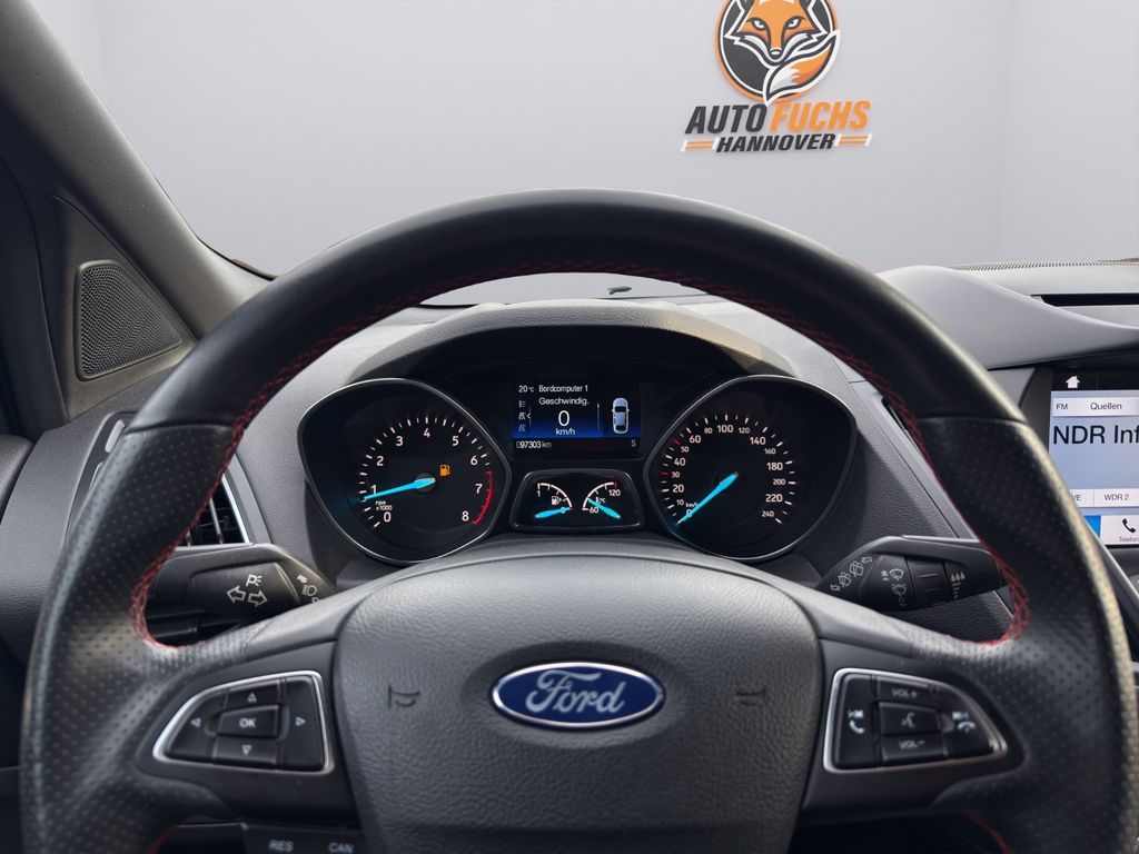 Antischlupfregelung (ASR), Audiobedienung am Lenkrad, Außenspiegel elektr. verstell- und heizbar, Body-Styling-Paket, Bordcomputer, Brillenfach in Dachhimmel / Dachkonsole integriert, Dachreling, Dimmer Instrumentenbeleuchtung, Einstiegsleisten (Edelstahl), Elektr. Bremskraftverteilung (EBD), Fahrassistenz-System: Berganfahr-Assistent (Hill-Holder), Fahrassistenz-System: Notbrems-Assistent, Fahrassistenz-System: Park-Assistent (Active Park Assist), Fensterheber elektrisch vorn + hinten mit Komfortschließung, Fußmatten Velours, Fußraumleuchte vorn, Innenausstattung: Aluminium-Dekor, Innenraumfilter: Staub- und Pollenfilter, Intelligent Protection System (IPS), Isofix-Aufnahmen für Kindersitz, Karosserie: 5-türig, Klimaautomatik 2-Zonen, Kühlergrill schwarz, Lendenwirbelstütze Sitz vorn links, Lendenwirbelstütze Sitz vorn rechts, Lenksäule (Lenkrad) höhen-/längsverstellbar, Leuchtweitenregelung, LM-Felgen, Mittelarmlehne hinten, Modellpflege, Motor 1,5 Ltr. - 110 kW EcoBoost KAT, My Key (2. Fahrzeugschlüssel programmierbar), Otto-Partikelfilter (OPF), Parkbremse elektrisch, Pedale Aluminium, Radstand 2690 mm, Reifen-Reparaturkit, Reifendruck-Kontrollsystem, Rücksitzlehne geteilt/klappbar (60:40), Schadstoffarm nach Abgasnorm Euro 6, Schalt-/Wählhebelgriff Leder, Schaltpunktanzeige, Scheinwerfer mit abgedunkelten Hintergrund, Sicht-Paket, Sitz vorn links höhenverstellbar, Sitzbezug / Polsterung: Stoff/Leder, Sonnenblende links mit Spiegel (beleuchtet), Sonnenblende rechts mit Spiegel (beleuchtet), Sportsitze vorn, Start/Stop-Anlage, Steckdose (12V-Anschluß) im Koffer-/Laderaum, Türgriffe außen Wagenfarbe, Verglasung getönt, Warnanlage für Sicherheitsgurte hinten