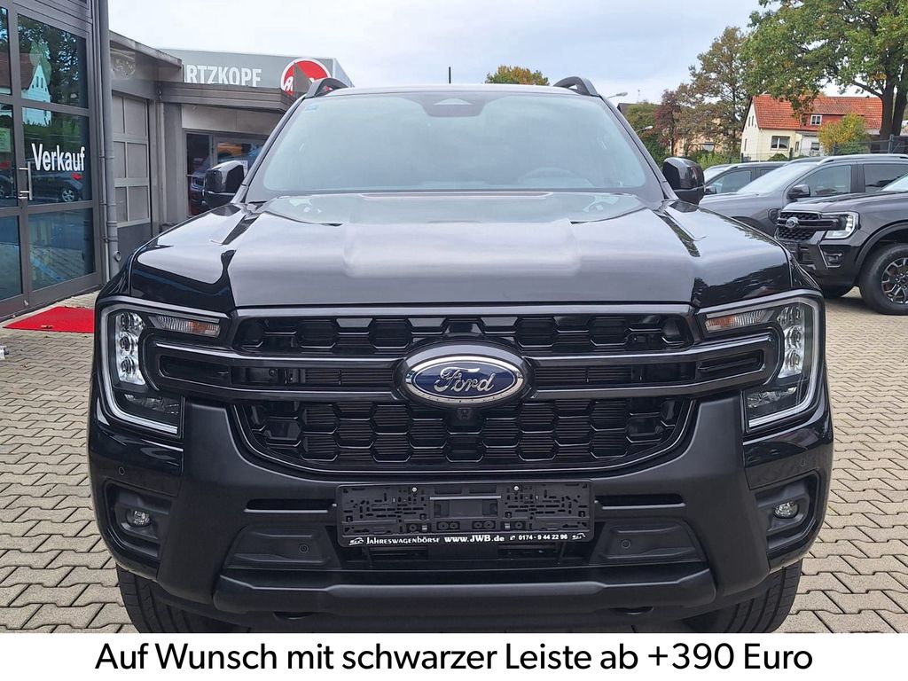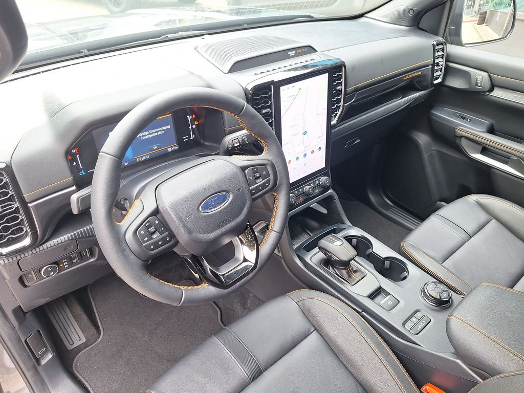 Ausstattungs-Paket: Turnier (Dachreling, Gepäckraum-Abtrennung Netz), Außenspiegel elektr. anklappbar, Außenspiegel elektr. verstell- und heizbar, Blinkleuchte in Außenspiegel integriert, Dachhimmel Stoff, dunkel, Dachreling, Einparkhilfe hinten, Fahrassistenz-System: Fernlichtassistent (Scheinwerfer mit Abblendautomatik), Fahrassistenz-System: Rückfahr-Assistent (Notbremsassistent), Fahrassistenz-System: Totwinkel-Assistent inkl. Cross Traffic Alert, FordPass Connect inkl. eCall, Fußmatten hinten, Fußmatten Premium, Fußmatten vorn, Getriebe Automatik - Typ: 10R80 (10-Stufen), Getränkehalter vorn, Heckklappe Easy Lift, Heckklappenentriegelung elektrisch (ohne Schloss), Heckleuchten LED, Heckscheibe heizbar, Innenraumfilter: Staub- und Pollenfilter, Innenspiegel mit Abblendautomatik, Karosserie/Aufbau: Pritsche, Doppelkabine, Klimaautomatik 2-Zonen, Koffer-/Laderaummanagement-System, Kombiinstrument Digitalanzeige 8 Zoll, Kotflügelverbreiterung, Lenkrad heizbar, Motor 3,0 Ltr. - 177 kW EcoBlue, Nebelscheinwerfer LED, Outdoor-Paket, Radstand 3270 mm, Rücksitz-Paket 15, Schadstoffarm nach Abgasnorm Euro 6d, Scheinwerfer LED, Seitenschweller mit Trittbrett, Sicherheits-Paket 3, Sitz-Paket , Sitzbezug / Polsterung: Leder, Sportbügel hinten (GFK) Wagenfarbe (Ladefläche), Türgriffe außen Wagenfarbe, Verglasung hinten abgedunkelt (Privacy Glass), Vorbereitungs-Paket Tachograph