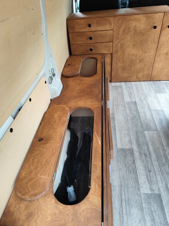 -viel Stauraum (große Anzahl von Schränken, ebenfalls sehr viel Platz unter der Bank und unter dem Bett, da es nur auf 5 Stützen steht (es können problemlos lange Sachen unter der Bettfläche verstaut werden, wie Angeln etc.)