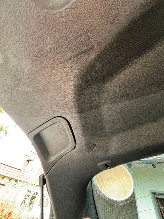 Lediglich eine kleine Druckstelle an der Verkleidung der Heckklappe, ansonsten befindet sich das Fahrzeug in einem sehr gepflegten Zustand.