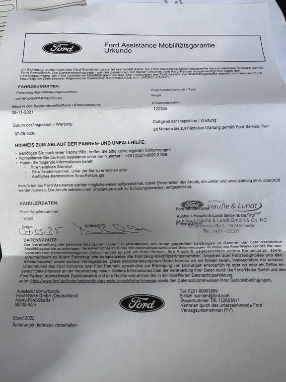 Dieser gepflegte Ford Kuga SUV aus 2021 bietet ein hervorragendes Gesamtpaket für anspruchsvolle Fahrer. Der 120 PS starke Dieselmotor mit Frontantrieb und Automatikgetriebe sorgt für eine effiziente Fahrleistung bei gleichzeitig niedrigem Verbrauch. Die graue Metallic-Lackierung harmoniert perfekt mit dem schwarzen Stoffinterieur. Dank umfangreicher Sicherheitsausstattung wie Kollisionsvermeidungssystem, Spurhalteassistent und adaptivem Tempomat genießen Sie maximalen Schutz. Das Fahrzeug verfügt über ein digitales Cockpit mit Navigationssystem, Touchscreen und Head-up-Display. Die 2-Zonen-Klimaautomatik, beheizbare Sitze vorne und hinten sowie Lendenwirbelstütze sorgen für höchsten Komfort. Mit Apple CarPlay, Android Auto und Bluetooth bleibt man stets vernetzt. Der Kuga überzeugt zudem mit voller Servicehistorie und erfüllt die Euro-6-Norm.- Digitales Cockpit mit Head-up-Display und Navigationssystem