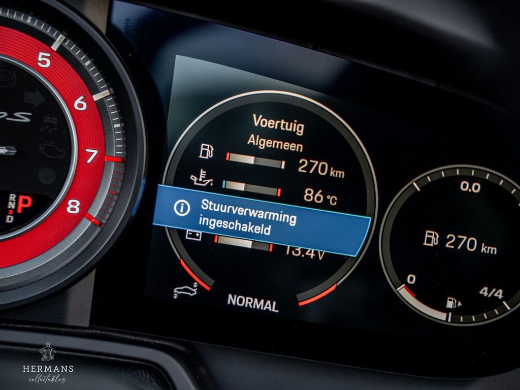 Der Porsche ist unter anderem mit folgenden (zusätzlichen) Optionen ausgestattet: Keramikbremsen (PCCB), Porsche Active Suspension Management (Sportfahrwerk PASM), Porsche Dynamic Chassis Control (PDCC), Porsche Torque Vectoring Plus (PTV Plus), Servolenkung Plus (4-Rad-Lenkung), Stoffverdeck (rot), Burmester High End Surround-System, Lederpaket 930, Sonnenblenden in Leder, Bicolor-Lederausstattung, Einstiegsleisten in Leder, Interieurleisten in Carbon, Sport Chrono Paket (farbig), farbiger Drehzahlmesser, Einstiegsleisten in Carbon (beleuchtet), LED-Einstiegsbeleuchtung, Komfortschlüssel, Porsche Emblem in den Kopfstützen, Matrix-LED-Scheinwerfer (PDLS+), 18-Wege-Sitze, Sitze mit Memory-Funktion, Sitzheizung, Sitzbelüftung, Lenkradheizung, farbige Sicherheitsgurte, Sportabgasanlage mit schwarzen Endrohren, lackiertes Porsche Logo, Ionisator, Ambientebeleuchtung, Porsche Vehicle Tracking System Plus (PVTS Plus) (Clifford), 360°-Kamera, Einparkhilfe vorn und hinten sowie Geschwindigkeitsregelanlage.