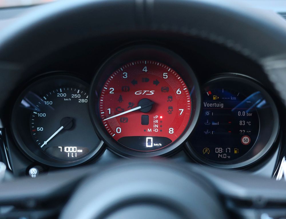 Inside, you are welcomed by a refined blend of black leather and Alcantara, accented by red stitching and GTS logos embroidered in the headrests. The front seats offer extensive electric adjustment, memory and heating for optimal comfort. The signature Sport Chrono clock sits proudly atop the dashboard, exactly as it should in a Porsche, while the panoramic roof enhances the sense of space and exclusivity.