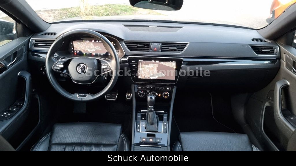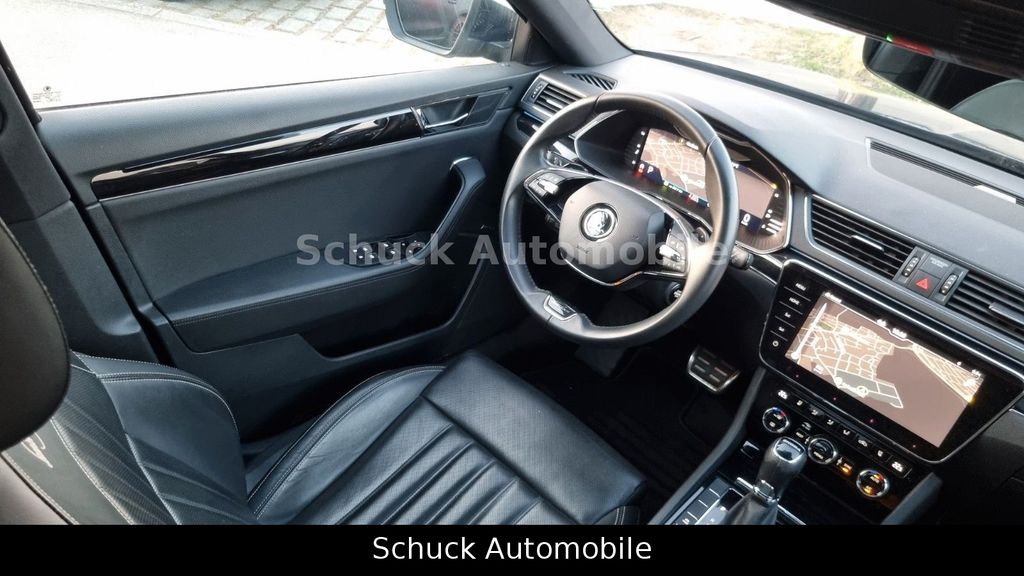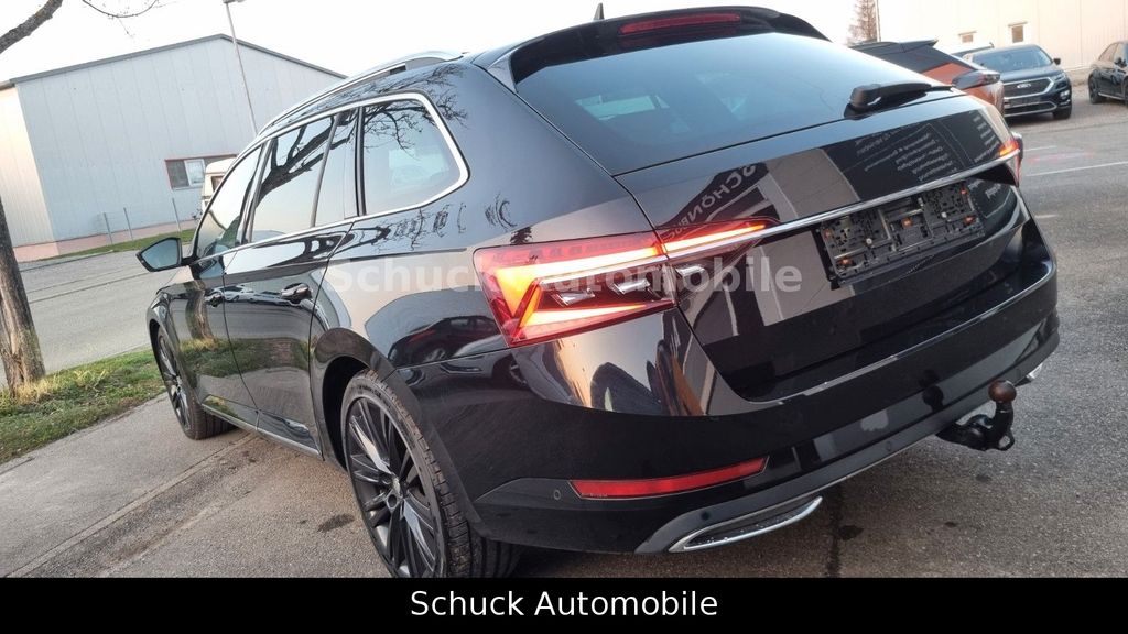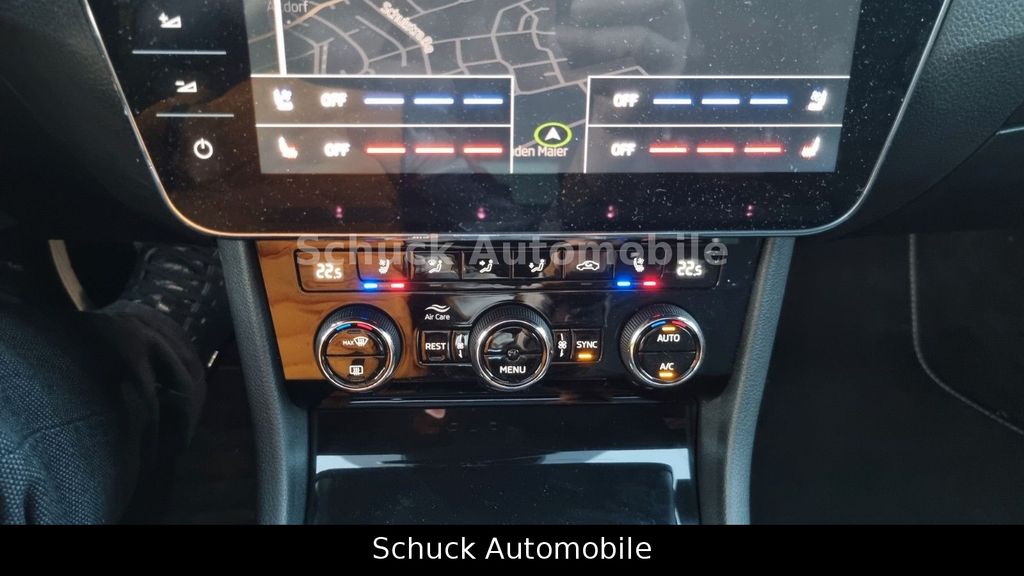 Angeboten wird ein Skoda Superb Combi aus 2020, bereits ein Modelljahr 2021, in der hochwertigen Austattungslinie "L&K" / Laurin & Klement" mit einer sehr umfangreichen Ausstattung, in der klassisch edlen Farbkombination "Black Magic Perleffekt" außen und einem schwarzen Interieur. Die beheizbaren Vordersitze als Komfort-Sportsitze in Vollleder sind elektrisch einstellbar mit Memoryfunktion und Massagefunktion für den Fahrersitz. Der Dachhimmel innen ist in schwarz ausgeführt.- L&K Austattungslinie