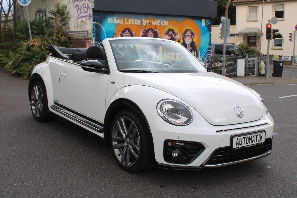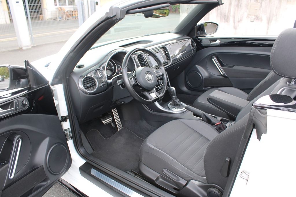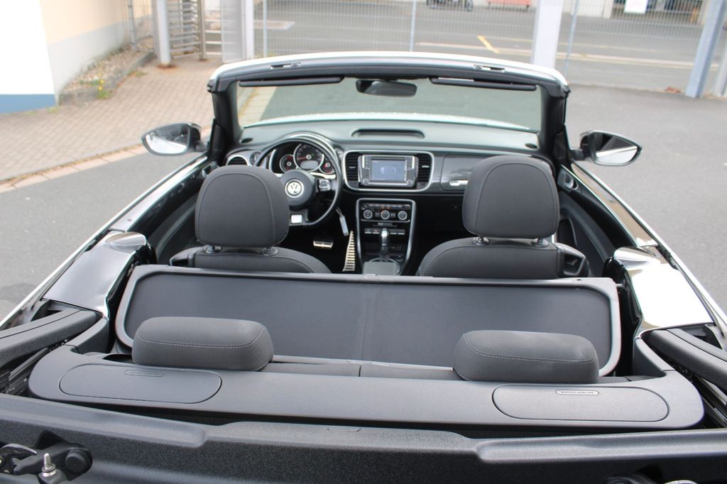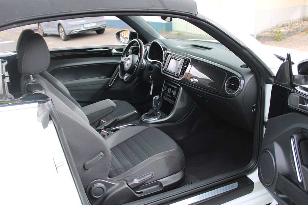 Erleben Sie den VW Beetle Cabrio in strahlendem Weiß mit nur einem Vorbesitzer. Dieser gepflegte Beetle aus 2018 überzeugt mit seinem 150 PS starken 1,4-Liter-Benzinmotor und Automatikgetriebe. Das Fahrzeug erfüllt die Euro 6-Norm und bietet zahlreiche Komfort- und Sicherheitsmerkmale. Die Ausstattung umfasst eine 2-Zonen-Klimaautomatik, Navigationssystem, Apple CarPlay und Android Auto. Für zusätzlichen Fahrkomfort sorgen beheizbare Sitze, Licht- und Regensensor sowie Einparkhilfen vorne und hinten mit Rückfahrkamera. Der Innenraum in Schwarz mit Stoffsitzen und Multifunktionslenkrad bietet Platz für 4 Personen. Das Sportpaket und die Sportsitze unterstreichen den dynamischen Charakter dieses Cabrios. Mit voller Servicehistorie und gültiger HU/AU ist dieses Fahrzeug sofort einsatzbereit.- Bi-Xenon-Scheinwerfer mit LED-Tagfahrlicht