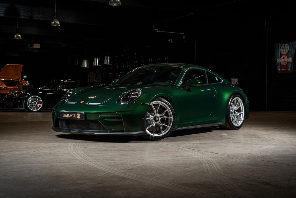 This is of course a 992 of the second iteration or a 992.2 GT3 Touring. Specified as elegantly as one can only specify a car of this class. The exterior is in Oak Green Matallic Neo. A color with deep roots in the brand's history but here in a new vintage. Slightly darker and deeper than the original but by far the best color choice for the new GT3. The exterior is beautifully framed with window moldings in brushed aluminum and rims painted in silver. A sober and beautiful whole where the dark nicely contrasts in the silver details and rims. The front has its 'airblades' painted in the car's color and is also adorned with Porsche's phenomenal HD-Matrix LED lights. The side profile is simple and clean. The only detail that stands out here is the base for the side mirrors which are painted here. The rear of the car is dominated by the centrally mounted exhaust system. Open the driver's door and you are greeted by a full leather interior in black with contrasting stitching in GT silver. Many of the details are upholstered in leather or alcantara, which in most sections has been chosen with the same contrasting stitching. Including over the steering column and air vent panel. Folding bucket seats with heating. A novelty for this iteration of the GT3, which here also makes room for a rear seat for the first time in a GT car. The details here are many. Too many to list, but the driver's environment is recognizable. Although in a new 992.2 version. In front of the driver is a completely new display specially adapted for the GT3. We do not find the famous start button here. Instead, a more traditional knob to start the car. But the highlight of this particular example is of course in the center console. A manual gear selector. Upgraded with the stroke we first got in the S/T sibling. In combination with the four-liter engine, this is today one of the world's most fun-to-drive machines.Swedish-sold car with 9590 km indicated. One user of course and in fantastic condition.
