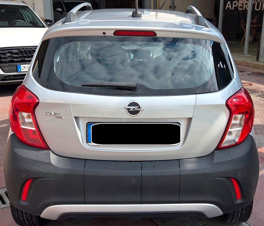 L'annuncio riguarda un veicolo Opel Karl 1.0 da 75 CV, classificato come minivan con carrozzeria metallizzata di colore argento e interni in tessuto grigio.L'auto dispone di un motore a benzina da 999 cc a tre cilindri, alimentazione anteriore e cambio manuale a 5 rapporti. La potenza è di 55 kW (75 cavalli).