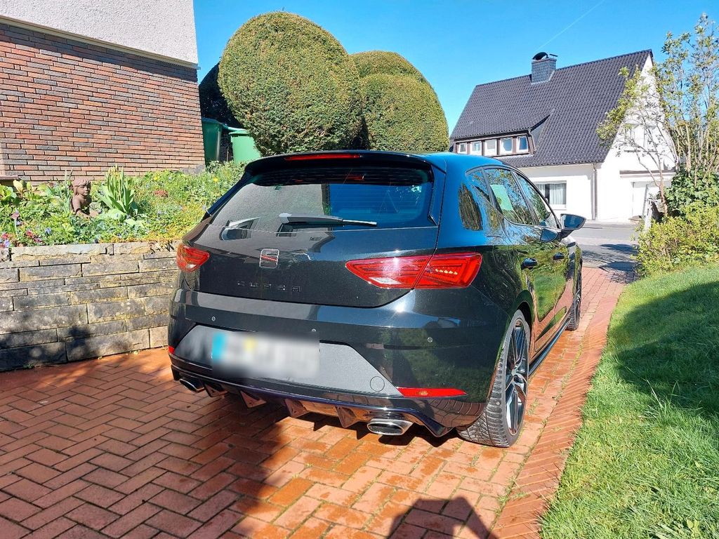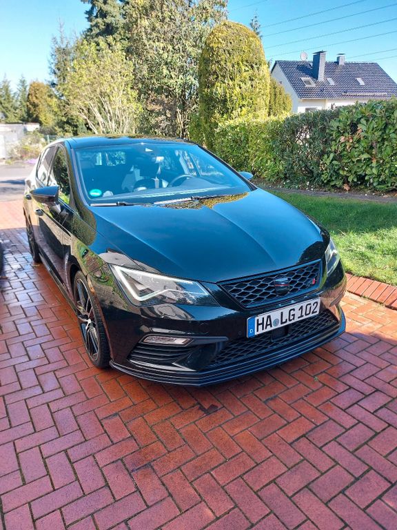 Zum Verkauf steht mein gepflegter Seat Leon Cupra 300 aus 2ter Hand mit DSG-Getriebe und 300 PS in klassischem Schwarz. Das Fahrzeug ist ein Fünftürer, hat aktuell 126.500 km gelaufen und befindet sich technisch in einem sehr guten Zustand.Der Cupra verfügt über eine umfangreiche Ausstattung mit unter anderem adaptivem Tempomat (ACC), Spurhalteassistent, Sitzheizung und Schiebedach.