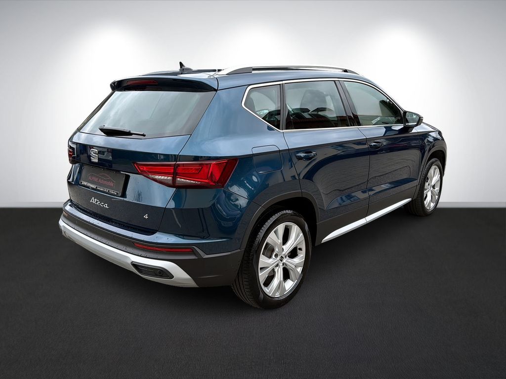 3. Bremsleuchte, Ablagetasche an Vordersitzlehnen, Airbag Beifahrerseite abschaltbar, Airbag Fahrer-/Beifahrerseite, Antriebs-Schlupfregelung (ASR), Antriebsart: Allradantrieb, Außenspiegel elektr. verstell-, heiz- und anklappbar mit Spiegelabsenkung, Außenspiegel Wagenfarbe, Blinkleuchten LED in Außenspiegel integriert, Bluetooth-Schnittstelle mit Freisprecheinrichtung integriert, Bordcomputer, Brillenfach, Design-Paket Exterieur, silber, Doppeltonhorn, Einstiegsleisten beleuchtet, Elektron. Querdifferentialsperre (XDS), Fahrassistenz-System: Berganfahr-Assistent (Hill-Holder), Fahrassistenz-System: Fahrprofilauswahl (SEAT Drive Profile), Fahrassistenz-System: Müdigkeitserkennung, Fahrassistenz-System: Umfeldbeobachtungssystem (Front assist) mit City-Notbremsfunktion, Fensterheber elektrisch vorn + hinten mit Komfortschaltung, Gepäckraumabdeckung / Rollo, Handschuhfach beleuchtet, Heckleuchten LED mit dynamischem Blinklicht, Innenraumlicht-Paket LED, Isofix-Aufnahmen für Kindersitz, Karosserie: 5-türig, Klimaanlage Climatronic 2-Zonen, Knieairbag Fahrerseite, Kofferraumbeleuchtung, Kopf-Airbag-System, Lendenwirbelstütze Sitz vorn links, verstellbar, Lendenwirbelstütze Sitz vorn rechts, verstellbar, Licht- und Sicht-Paket, LM-Felgen, Mittelarmlehne hinten, Mittelkonsole vorn mit Mittelarmlehne, Becherhalter, Ablagebox und Luftdüsen hinten, Modellpflege, Motor 2,0 Ltr. - 110 kW TDI, Nebelscheinwerfer LED mit Abbiegelicht, Notrufsystem, Parkbremse elektrisch mit Auto-Hold-Funktion, Radstand 2630 mm, Reifen-Reparaturset, Reifenkontroll-Anzeige, Rückfahrkamera, Rücksitzlehne geteilt/klappbar (1/3-2/3), Schadstoffarm nach Abgasnorm Euro 6d, Schalt-/Wählhebelgriff Leder, Scheinwerfer Voll-LED, Schließ-/Startsystem Kessy, SEAT Media-System Plus, Seitenairbag, Seitenscheiben hinten und Heckscheibe abgedunkelt, Sitz vorn links höhenverstellbar, Sitz vorn rechts höhenverstellbar, Sitzbezug / Polsterung: Stoff, Sonnenblende links mit Spiegel (beleuchtet), Sonnenblende rechts mit Spiegel (beleuchtet), Start/Stop-Anlage, Stau-/Ablagefach unter Sitz vorn links, Steckdose (12V-Anschluß) vorn, USB-Ladeanschlüsse (2-fach, Typ C) für 2.Sitzreihe, Verzurrösen Koffer-/Laderaum, Wärmeschutzverglasung