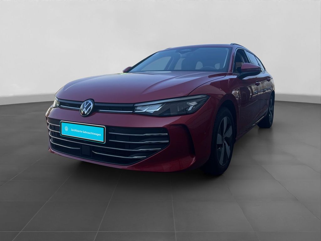Ausstattungsvariante; Business; Garantie; Anschlussgarantie 3 Jahre max. 100.000 km; Getriebe / Antrieb; Automatik; Frontantrieb; Pakete; Business Premium Paket; Easy Open & Close Paket; Airbags; Center-Airbag; Fahrer-/Beifahrerairbag; Knieairbag; Kopfairbag vorn und hinten; Seitenairbag; Sicherheit; LED Scheinwerfer; Anhängerrangierassistent - Trailer Assist; Ausparkassistent - Rear Traffic Alert; Car2X; LED Tagfahrlicht mit Leaving und Coming Home Funktion; Memory-Funktion für Parkassistent; Spurhalteassistent Lane Assist; Spurwechselassistent Side Assist; Stauassistent; Abbiegebremsfunktion; Ablenkungserkennung; Ausstiegswarnung; Ausweichunterstützung; Auto Hold Funktion; Begrüssungslicht; Beifahrerairbag Deaktivierung; Berganfahrassistent; Diebstahlwarnanlage mit Innenraumüberwachung und Abschleppschutz; Einparkhilfe vorn und hinten mit Parklenkassistent Plus; Elektrisches Stabilitätsprogramm ESP; Fahrlichtautomatik; Fernlichtassistent Light Assist; Fußgängererkennung; Geschwindigkeitsbegrenzer mit vorausschauender Regelung; i-Size Kindersitzbefestigung vorn und hinten; ISOFIX Kindersitzbefestigung vorn und hinten; Kindersicherung; Kreuzungsassistent; Lichtsensor; Müdigkeitserkennung; Notruf Service; Proaktives Insassenschutzsystem; Progressivlenkung; Regensensor; Reifendruckkontrolle; Rückfahrkamera Rear View; Umfeldbeobachtungssystem Front Assist; Verabschiedungslicht; Verkehrszeichenerkennung; Vorbereitung Alcohol Interlock; Audio & Kommunikation; Infotainment-System mit Touch-Farbdisplay; Navigationssystem; Handy / Telefon Freisprecheinrichtung Comfort mit induktiver Ladefunktion; 2 USB-C-Ladebuchsen an der Mittelkonsole hinten; 2 USB-C-Schnittstellen vorn; 8 Lautsprecher; Android Auto; App-Connect Wireless; Apple CarPlay; Digitaler Radioempfang DAB+; Online-Connectivity-Unit; Sprachassistent IDA und elektronische Sprachverstärkung; VW Connect Plus Vorbereitung; Komfort; ergoActive-Sitze vorn mit elektrischer Einstellung; Fahrer-/Beifahrersitz höhenverstellbar mit ausziehbarer Oberschenkelauflage; Head-Up Display; Komfortsitze; Lendenwirbelstütze Fahrer-/Beifahrersitz; Massagesitze vorn; Sitzheizung vorn; Sitzfläche und -lehne getrennt einstellbar; Air Care Climatronic 3-Zonen; Bedienungselemente in der 2.Sitzreihe für Climatronic; Gepäckraumklappe elektrisch öffnend und schließend mit sensorsteuerung; Automatisch abblendender Innenspiegel; Automatische Distanzregelung ACC mit stop & go; Fensterheber elektrisch; Fernentriegelung Gepäckraumklappe; Keyless Entry - Keyless Access Schlüsselloses Schließ und Startsystem; LED Einstiegsleuchten; Mittelarmlehne hinten; Mittelarmlehne hinten mit Durchlademöglichkeit; Servotronic; Sonnenschutzrollo; Verglasung hinten abgedunkelt; Zentralverriegelung mit Fernbedienung; Interieur; Sitzbezüge in Alcantara / Stoff; Dachhimmel in Ceramique; Digital Cockpit Pro; Ambientebeleuchtung; Gepäcknetz; Gepäckraumabdeckung auszieh- und herausnehmbar; mit elektrischer Öffnung; LED Fußraumbeleuchtung Lichtfarbe wählbar; Make-up Spiegel beleuchtet; Multifunktionslederlenkrad beheizbar mit Schaltwippen; Netztrennwand; Rücksitzlehne geteilt/klappbar; Exterieur; Adaptive Fahrwerksregelung DCC Pro mit Fahrprofilauswahl; Anhängerkupplung anklappbar mit elektrischer Entriegelung; Außenspiegel elektrisch verstell-/anklappbar beheizt automatisch abblendend; Außenspiegel mit Umfeldbeleuchtung; Beifahrerspiegelabsenkung; Dachreling silber eloxiert; Heckspoiler in Wagenfarbe; LED Rückleuchten; Leichtmetallfelgen 17 Zoll Bologna; Mobilitäts-Ganzjahresreifen (selbstversiegelnd); Rekuperation - Bremsenergierückgewinnung; Start-Stop System; Türgriffmulden beleuchtet; Umfeldbeleuchtung mit Logoprojektion; Leuchtweitenregulierung; Sonstiges; Kraftstofftank 66 L; Ladekantenschutz Edelstahl; Pannenkit; Metallic-Lackierung