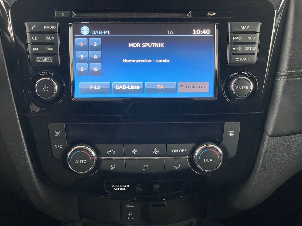 3. Bremsleuchte, Airbag Beifahrerseite abschaltbar, Airbag Fahrer-/Beifahrerseite und Seitenairbag vorn, Audio-/Bordcomputerbedienung am Lenkrad, Audiosystem: DAB Radio/CD-Player mit 6 Lautsprecher, Ausstattungs-Paket: Nissan Connect mit Around View Monitor, Automatische Fahrlichtschaltung, Außenspiegel elektr. anklappbar, verstell- und heizbar, Bordcomputer, Bremsassistent (Nissan Brake-Assist), Coming-Home-Lichtfunktion (Friendly Lightning), Einparkhilfe vorn und hinten mit 360 grad Kamera, elektrische Heckklappe, Fahrassistenz-Paket Acenta, Fahrassistenz-System: Aktive Fahrkomfortregelung (Fahrwerksdämpfung), Fahrassistenz-System: Aktive Motorbremse, Fahrassistenz-System: Berganfahr-Assistent + Bergabfahr-Assistent, Fahrassistenz-System: Kurvenbremskontrolle (Aktive Spurkontrolle), Fensterheber elektrisch vorn + hinten, Fernentriegelung Tankklappe, Freisprechanlage Bluetooth, Frontscheibe Verbundglas, Gurtstraffer, Heckscheibe heizbar, Innenspiegel mit Abblendautomatik, Isofix-Aufnahmen für Kindersitz, Karosserie: 5-türig, Kindersicherung, Klimaautomatik 2-Zonen, Komfort-Paket, Komfortsitz vorn links, Komfortsitz vorn rechts, Kopf-Airbag-System, Kopfstützen vorn verstellbar, Lenksäule (Lenkrad) + höhen-/längsverstellbar, Leseleuchte vorn, Mittelarmlehne hinten mit Getränkehalter, Modellpflege, Motor 2,0 Ltr. - 130 kW dCi Diesel KAT, Nebelschlussleuchte, Parkbremse elektrisch, Radstand 2706 mm, Reifen-Reparaturset, Reifendruck-Kontrollsystem, Rücksitzbank verschiebbar, Schadstoffarm nach Abgasnorm Euro 6, Schlüssellose Zentralverriegelung, Schalt-/Wählhebelgriff Leder, Schaltpunktanzeige, Sitz vorn links höhenverstellbar, Sitz vorn rechts höhenverstellbar, Sitzausstattung: 5-Sitzer, Sitzbezug / Polsterung: Stoff, Sonnenblenden mit Spiegel (beleuchtet), Start/Stop-Anlage, Steckdose (12V-Anschluß) in Mittelkonsole, Style-Paket, Türgriffe außen verchromt, USB-Schnittstelle, Verglasung hinten abgedunkelt, Wärmeschutzverglasung mit UV-Schutz