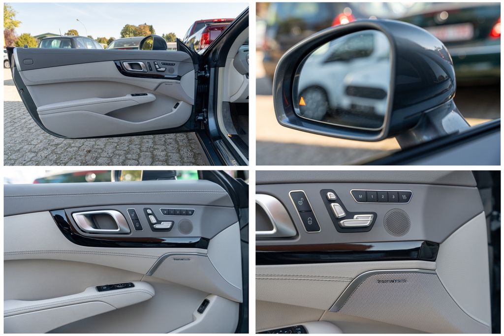 Adaptive Scheibenwischeranlage (Magic Vision Control) beheizt, Ambiente-Beleuchtung, Ascher anstelle Ablagefach, Außenspiegel elektr. anklappbar, Bereifung mit Notlaufsystem, Einstiegsleisten beleuchtet, Fahrassistenz-Paket Plus, Fahrassistenz-System: aktiver Park-Assistent, Fußmatten Velours, Getränkehalter vorn, Innenausstattung: Edelholz Esche, schwarz, Komfort-Fahrwerk (Agility Control), Kopfraumheizung (Airscarf), Kraftstofftank: vergrößert, LM-Felgen vorn/hinten: 8,5x19 / 9,5x19 (AMG, 7-Doppelspeichen), Media Interface (Universal-Schnittstelle für iPod / AUX / USB / MP3), Multikontursitz-Paket Aktiv, Panorama-Variodach elektr. Magic Sky Control (Durchsicht variabel), Reifendruck-Kontrollsystem, Rückfahrkamera, Sender für Garagentoröffner (integriert), Sitze vorn: Klimatisierung, Sound-System Harman-Kardon mit Logic7-Surround-System, Windschott elektr., Zeituhr (Analog)