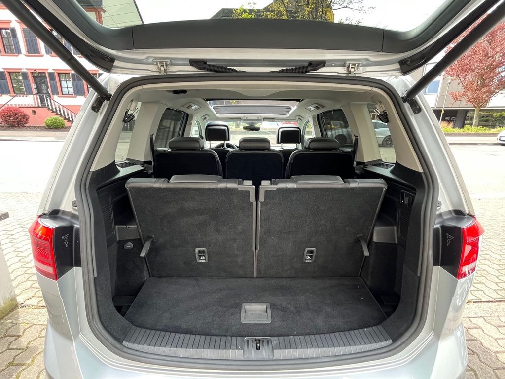 Sonderausstattung:3.Sitzreihe mit Einzelsitzen (2 Sitzplätze), Audiosystem Composition Media (Touchscreen, Radio/CD-Player, MP3, Bluetooth), Fahrassistenz-System: Autom. Distanzregelung (ACC) mit Umfeldbeobachtungssystem (Front assist, bis 210 km/h), Fahrassistenz-System: Fahrprofilauswahl, Fahrassistenz-System: Parklenkassistent (Park Assist), Fahrassistenz-System: Verkehrszeichenerkennung, Family-Paket, Heckleuchten LED, Innenausstattung: Leder Vienna (inkl. Sitzheizung vorn), LM-Felgen 6,5x17 (Salvador, Grau-Metallic), Metallic-Lackierung, Mobile Online Dienste Car-Net, Mobiltelefon Schnittstelle Comfort (inkl. Bluetooth-/Audio-Schnittstelle), Multimedia-Schnittstelle 2 x USB (iPhone / iPod) mit AUX-IN, Navigationsmodul Discover Media (für Audiosystem), Panorama Schiebe-/Hebedach vorn elektrisch, mit Panoramadach hinten, Reifendruck-Kontrollsystem, Rückfahrkamera (Rear View), Seitenairbag hinten, Spiegel-Paket, Verglasung hinten abgedunkelt (65 %)