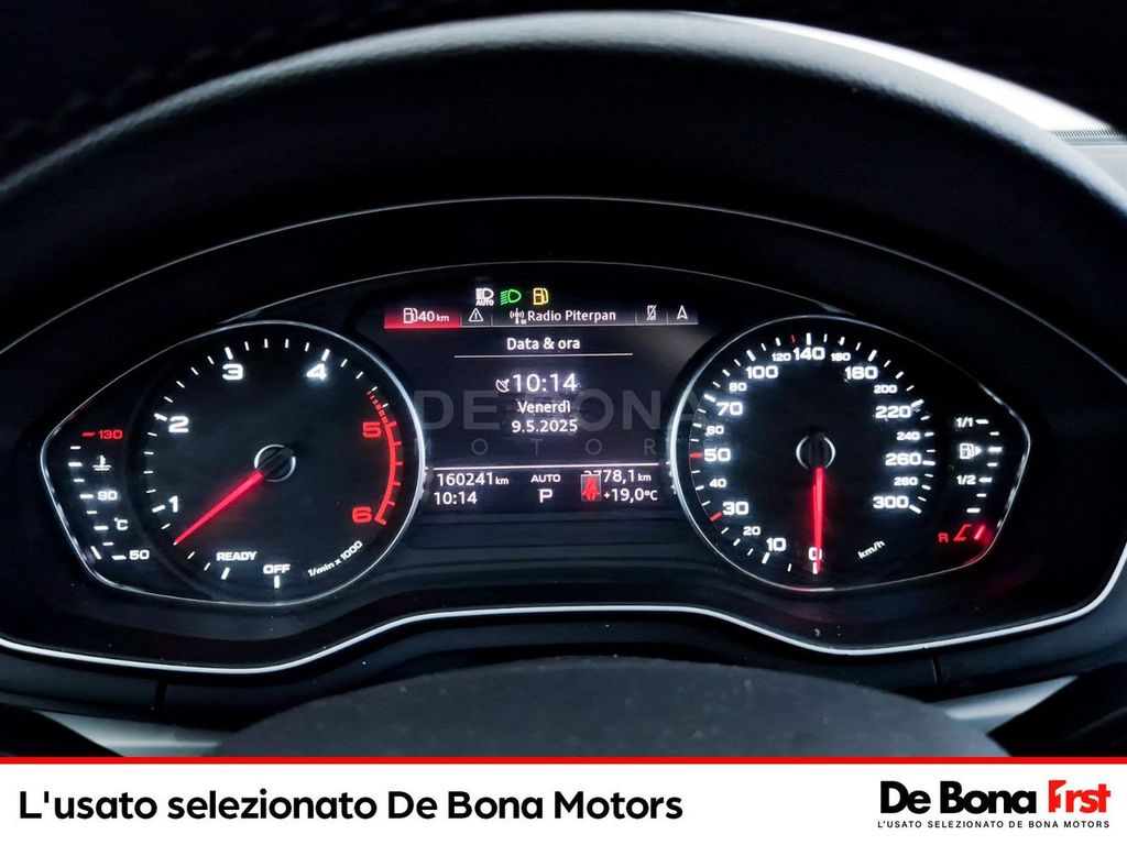 Concessionaria Ufficiale di vendita e assistenza. Contattaci per verificare la disponibilità dell'auto nella sede più vicina. Prezzo da intendersi escluso passaggio di proprietà. Vuoi sapere tutto su questo veicolo? Contattaci e comunicaci il CODICE VEICOLO:[Rif. U-Infinity01#517529-U]ALTRI OPTIONALS: Airbag laterali anteriori e sistema di airbag laterali per la testa, Appoggiabraccia centrale anteriore comfort con regolazione dell'inclinazione e regolazione in senso longitudinale.Incluso nelle versioni Business e Business Sport, Assetto sportivo abbassamento delle sospensioni di 20 mm, con taratura pi amp;ugrave; rigida delle m, Attrezzi di bordo, Audi connect Emergency call amp; Service, Audi connect Navigation amp; Infotainment plus, Audi drive select, Audi pre sense city, Audi smartphone interface, Audi virtual cockpit plus, Battitacco anteriore con inserto in alluminio illuminato con logo S, Caratterizzazione estetica S line, Cerchi in lega di alluminio 8J x 18 a 5 razze a Y e pneumatici 245/40 R18, Chiusura centralizzata con telecomando, Cielo vettura in tessuto, Climatizzatore automatico comfort 3 zone e sensore pioggia/luci, Cofano anteriore con sistema di protezione dei pedoni, Copertura del vano bagagli ad apertura/chiusura elettrica, Cruise control, Disattivazione airbag passeggero anteriore, Dispositivo antiavviamento elettronico (immobilizer Audi), Dispositivo di assistenza per proiettori abbaglianti, Fondo del vano di carico double-face, Freno di stazionamento elettromeccanico, Gruppi ottici posteriori a LED, Illuminazione interna a LED, Inserti in vernice diamantata grigio argento, Interfaccia Bluetooth, Kit di pronto soccorso e triangolo di emergenza nel vano bagagli. 2 Giubbini ad alta visibilita nei vani portaoggetti delle portiere anteriori (1 per lato), Kit riparazione pneumatico, Logo modello al portellone senza denominazione tecnologia, Mancorrenti al tetto in alluminio anodizzato, Pacchetto esterno lucido (A4 Avant)