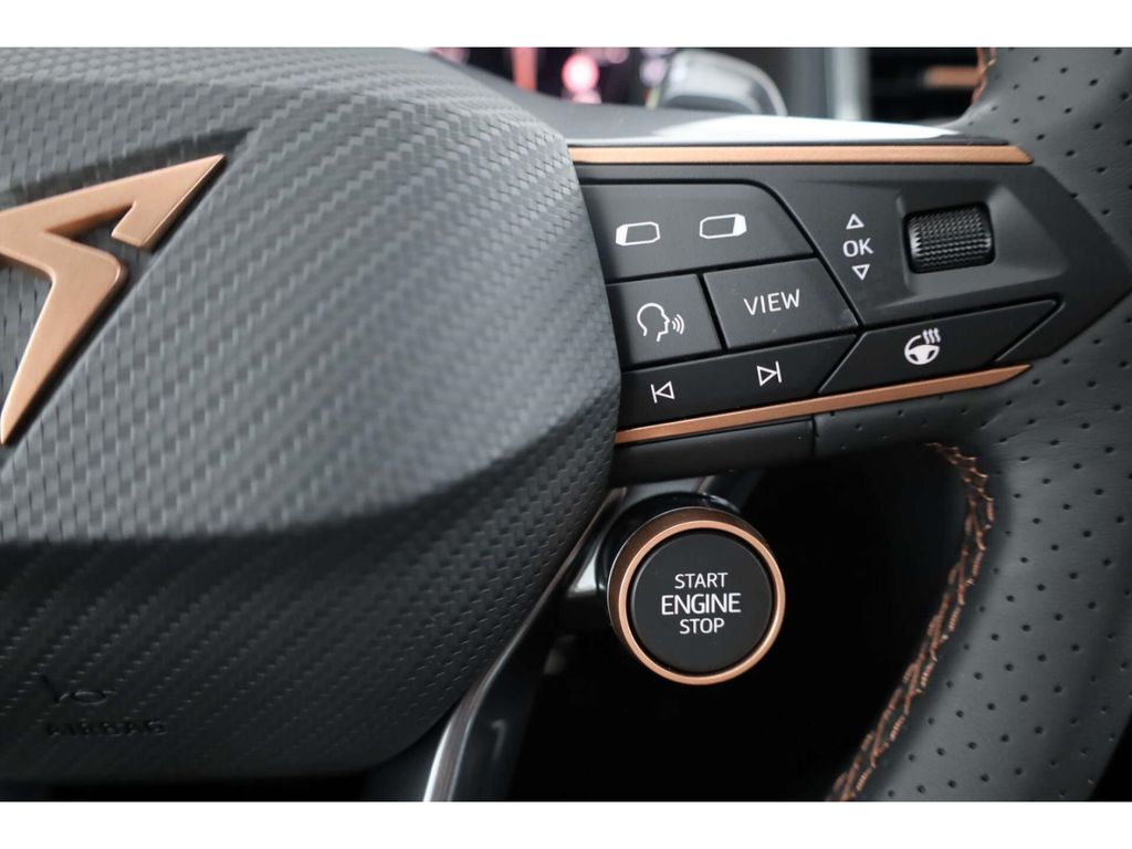 - Interieur: 12 Volt-Steckdose im Kofferraum, 2 Leseleuchten vorn,2 hinten, 2 USB-C-Schnittstellen vorn, 230V Wechselrichter und Steckdose für Europa, 230-V-Steckdose im Gepäckraum inkl. 12-V-Steckdose, 8 Lautsprecher ( passiv ), Ambientebeleuchtung, Angehobener Ladeboden hinten, Brillen-Ablage/Halter, CUPRA Multifunktionslenkrad in Leder mit Motorstart- und CUPRA-Modus-Taste, CUPRA Supersportmultifunktionslenkrad, beheizbar mit CUPRA Mode Selector, Dachhimmel in schwarz, Einstiegleisten in den Türausschnitten (beleuchtet), Gepäckraumabdeckung,klappbar, Gepäcktaschen an Rückenlehnen, Gepäcktrennnetz, Höheneinstellung,manuell,für Vordersitze, Innenleuchte im Fußraum vorn und hinten, Lendenwirbelstütze, manuell einstellbarin Vordersitzlehnen, Make-up-Spiegel links, beleuchtet, mit Abdeckung und Tasche, Make-up-Spiegel rechts, beleuchtet, Mittelarmlehne vorn, Netztrennwand, Rücksitzbank ungeteilt, Lehne geteilt umlegbar mit Mittelarmlehne, Sicherheitsinnenspiegel automatisch abblendbar, Sitzmittelbahn in Mikrofaser Dinamica, Sportpedalerie in Aluminiumoptik, Sportsitze vorn, Staufach unter den Vordersitze(n), Volldigitales Kombiinstrument mit 10,25TFT Display, Wireless Charger, Wireless Charger im Ablagefach der Mittelkonsole