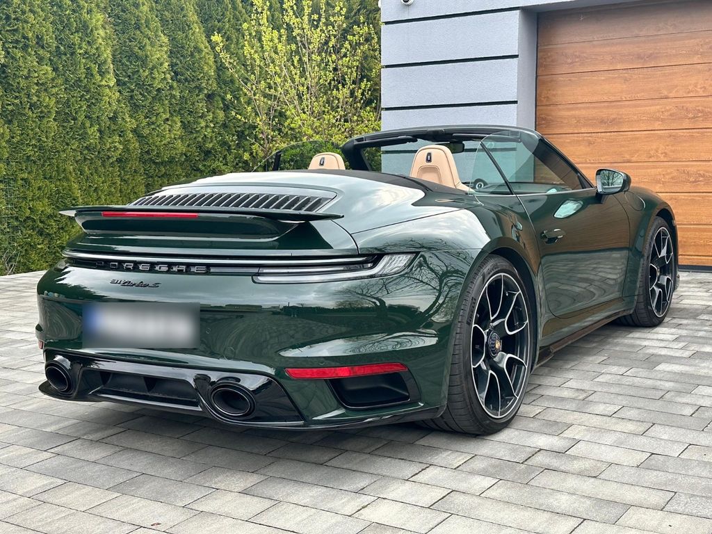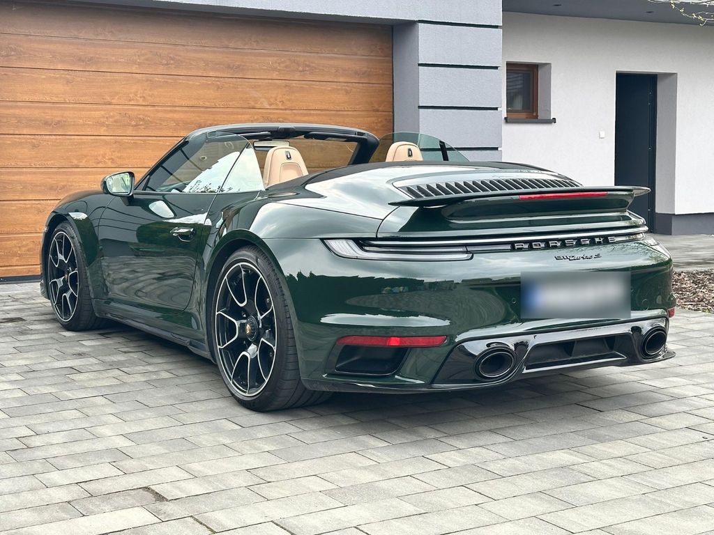Sonderausstattung:Außenspiegel Unterschale Wagenfarbe und Spiegelfuss schwarz (Hochglanz) lackiert, Einstiegsblenden (Carbon) beleuchtet, Einstiegsleuchte mit LED-Projektor Porsche-Schriftzug, Exterieur-Paket lackiert, Fahrassistenz-System: Park-Assistent vorn und hinten inkl. Rückfahrkamera und Surround View, Fahrassistenz-System: Porsche InnoDrive inkl. Abstandsregeltempomat, Fahrassistenz-System: Spurwechselassistent, Frontscheibe mit Bandfilter oben, Fzg. ohne Modellbezeichnung, Heckleuchten Exclusiv Design, Innenausstattung: Leder, Bicolor, Innenraumlicht-Paket / Licht-Design-Paket, Interieur-Zusatzpaket: Schalttafel und Türtafel Leder, Kopfstützen vorn mit Porschewappen, Lamellen Lufteinlass im Heckdeckel lackiert, Leder-Paket 930, Lenkrad heizbar (GT Sport / Leder) mit Multifunktion und Schaltfunktion, Lenksäulenverkleidung Leder, Liftsystem Vorderachse, LM-Felgen (schwarz, Hochglanz lackiert), LM-Felgen vorn/hinten: 9,5x20 / 12x21 (911 Turbo S Exclusive Design Rad), Lufteinlassblende Seitenwand lackiert, Matrix-LED-Scheinwerfer, abgedunkelt, inkl. Porsche Dynamic Light System Plus (PDLS+), Pedalerie und Fußstütze aus Aluminium, Schriftzug Porsche lackiert, Servolenkung Plus (geschwindigkeitsabhängig), Sitzbelüftung vorn, Sonnenblenden Leder, Sport-Auspuffanlage, Endrohre schwarz, Sportsitze Plus - Rückenlehnen Leder, Dekor Leder, Tankdeckel Exclusive Design, Vehicle-Tracking-System Plus (PVTS Plus), Ziffernblatt Drehzahlmesser, farbig, Ziffernblatt farbig, Sport Chrono Stoppuhr