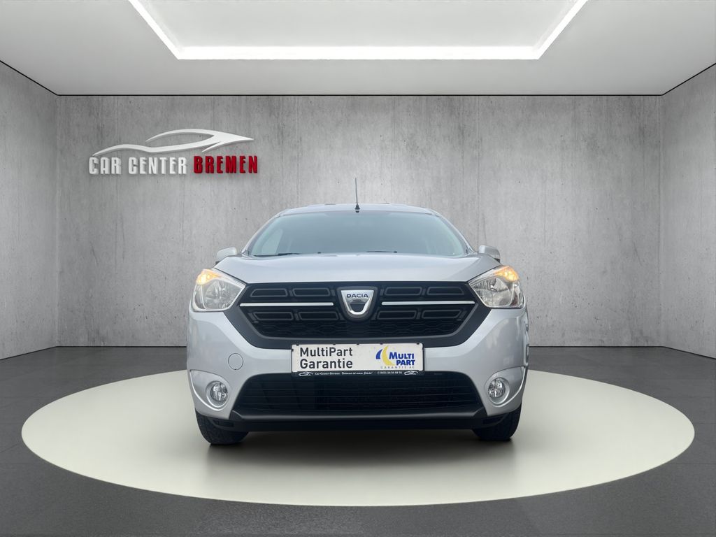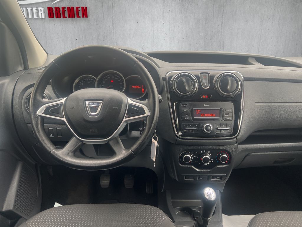 Ablagefach im Dachhimmel, Airbag Beifahrerseite, Airbag Beifahrerseite abschaltbar, Airbag Fahrerseite, Antischlupfregelung (ASR), Audiosystem: Radio-CD (MP3-fähig) mit AUX-IN, USB-Anschluss und Bluetooth (Dacia Plug & Radio), Außenspiegel elektr. verstell- und heizbar, Außenspiegel Wagenfarbe, Außentemperaturanzeige, Bordcomputer, Bremsassistent, Dachreling, Eco Mode (Fahrmodusschalter), Elektr. Bremskraftverteilung, Handschuhfach abschließbar, Heckflügeltüren mit Verglasung, Heckscheibe heizbar, Heckscheibenwischer, Heizung mit Umluftschaltung, Isofix-Aufnahmen für Kindersitz an Rücksitz, Karosserie: 5-türig, Klapptische in Fahrer- und Beifahrersitzlehne integriert, Komfort-Paket, Kunststoffboden im Koffer-/Laderaum, Luftdüsen im Fond, Modellpflege, Motor 1,6 Ltr. - 75 kW SCe KAT, PKW-Zulassung, Raucher-Paket, Reifendruck-Kontrollsystem, Rücksitzbank (2.Reihe) geteilt, klappbar (1/3-2/3), Schadstoffarm nach Abgasnorm Euro 6, Schaltpunktanzeige, Schiebetür links mit Ausstellfenster, Schiebetür rechts mit Ausstellfenster, Schutzzierleisten seitlich, Seitenairbag vorn, Sicherheitsgurte vorn höhenverstellbar, Sitzbezug / Polsterung: Stoff, Start/Stop-Anlage, Steckdose (12V-Anschluß) 2.Sitzreihe, Stoßfänger Wagenfarbe, Türverriegelung automatisch