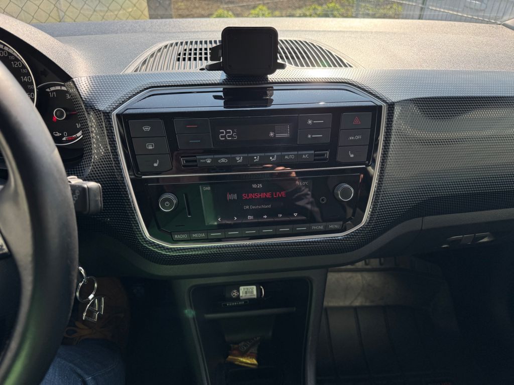 Airbag Fahrer-/Beifahrerseite, Beifahrerairbag abschaltbar, Antriebs-Schlupfregelung (ASR), Audiosystem Composition Phone (Bluetooth, SD-Karten-Schnittstelle, AUX-IN), Außenspiegel Wagenfarbe, Bluetooth-Schnittstelle für Mobiltelefon, Bremsassistent, Chrom-Paket 2, Dachhimmel Stoff, grau, Elektromotor 61 kW, Frontscheibe Verbundglas getönt, Funkschlüssel (2) klappbar, Fußmatten Textil, Gepäckraumabdeckung / Rollo, Gepäckraumbeleuchtung, Gepäckraumboden höhenverstellbar, Gepäcksicherungsnetz, Getriebe für Elektrofahrzeug, Handschuhfach mit Klappe, Heckscheibe heizbar, Heckscheibenwischer, Innenausstattung: Dekor Black Cube, Innenspiegel abblendbar, Isofix-Aufnahmen für Kindersitz an Rücksitz, Karosserie: 4-türig, Kennzeichenbeleuchtung LED, Klimaanlage Climatronic 1-Zonen, Kopfstützen hinten, Ladekabel mit Typ 2-Stecker (Mode 3), Lautsprecher (6), Lenksäule (Lenkrad) höhenverstellbar, Mobile Online Dienste VW Connect, Modellpflege (2), Motor-Schleppmoment-Regulator (MSR), Multifunktionsanzeige / Bordcomputer, Multimedia-Schnittstelle USB, Nebelschlussleuchte, Nichtraucher-Paket, Radioempfang digital (DAB+), Radvollabdeckungen / Radzierblenden, Reifen-Reparaturkit (Tire Mobility Set), Reifenkontroll-Anzeige, Rücksitzlehne geteilt, Scheinwerfer Halogen H4, Seitenairbag vorn mit Kopf-Airbag-Einheit, Sitzbezug / Polsterung: Stoff Fusion, Smartphone Halterung maps+more Dockingstation, Sonnenblende rechts mit Spiegel, Stabilisator vorn, Stahlfelgen 5x14, Stoßfänger lackiert, Türgriffe außen Wagenfarbe, Türgriffe innen verchromt, Verbandkasten und Warndreieck, Warnanlage für Sicherheitsgurte vorn und hinten, Wärmeschutzverglasung grün getönt (seitlich / hinten)