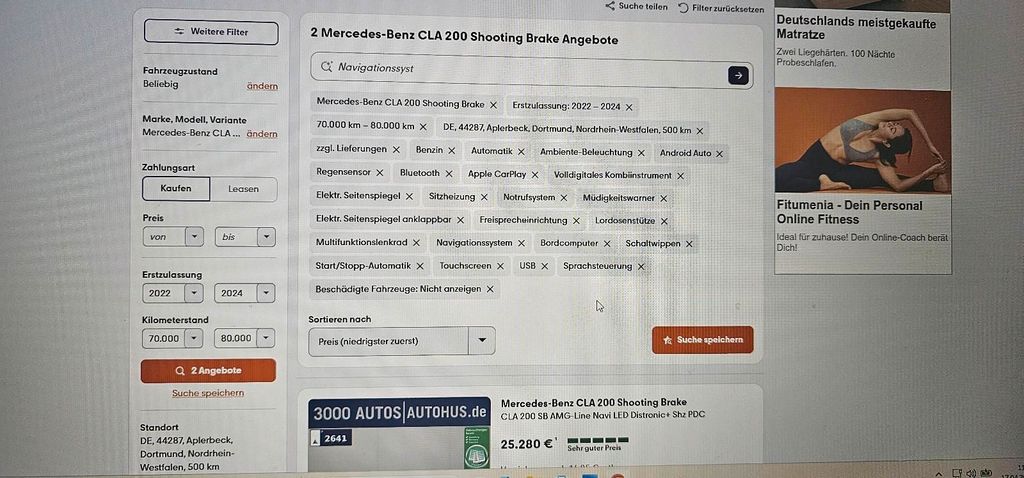 Zum Verkauf steht ein äußerst gepflegter Mercedes CLA 200 Shooting Brake aus dem Jahr 2022 mit ca. 75.000 km Laufleistung. Das Fahrzeug stammt aus 1. Hand und überzeugt durch seine moderne Ausstattung, sportliches Design und hohen Fahrkomfort.Der Wagen befindet sich technisch sowie optisch in einem sehr guten Zustand und wurde stets sorgfältig behandelt und bei Mercedes gewartet