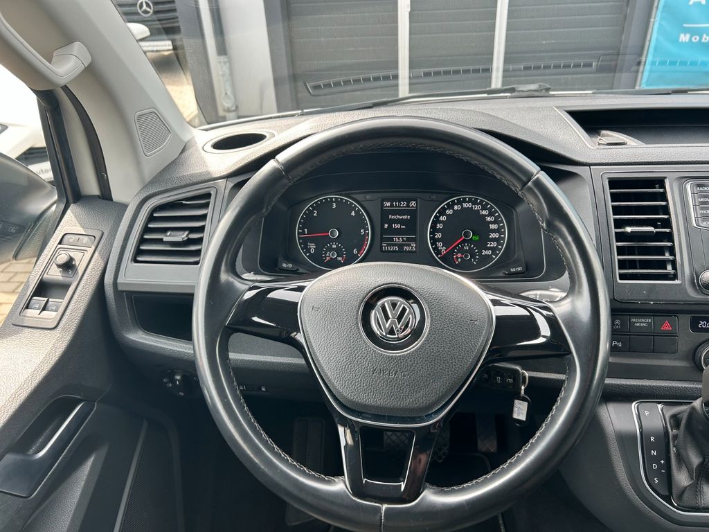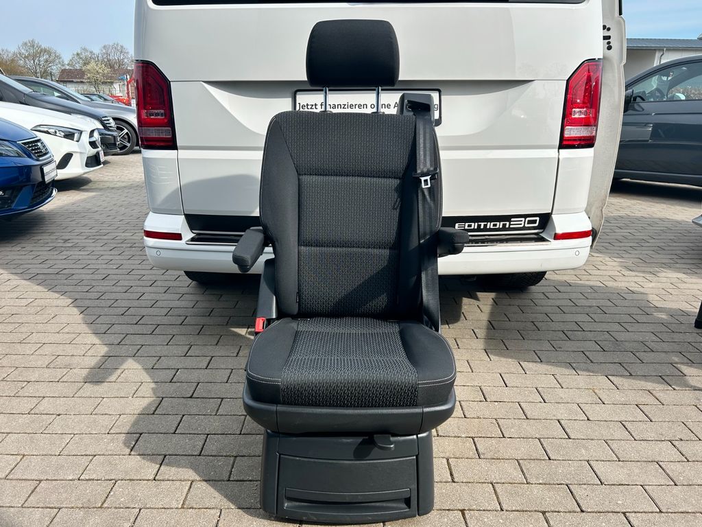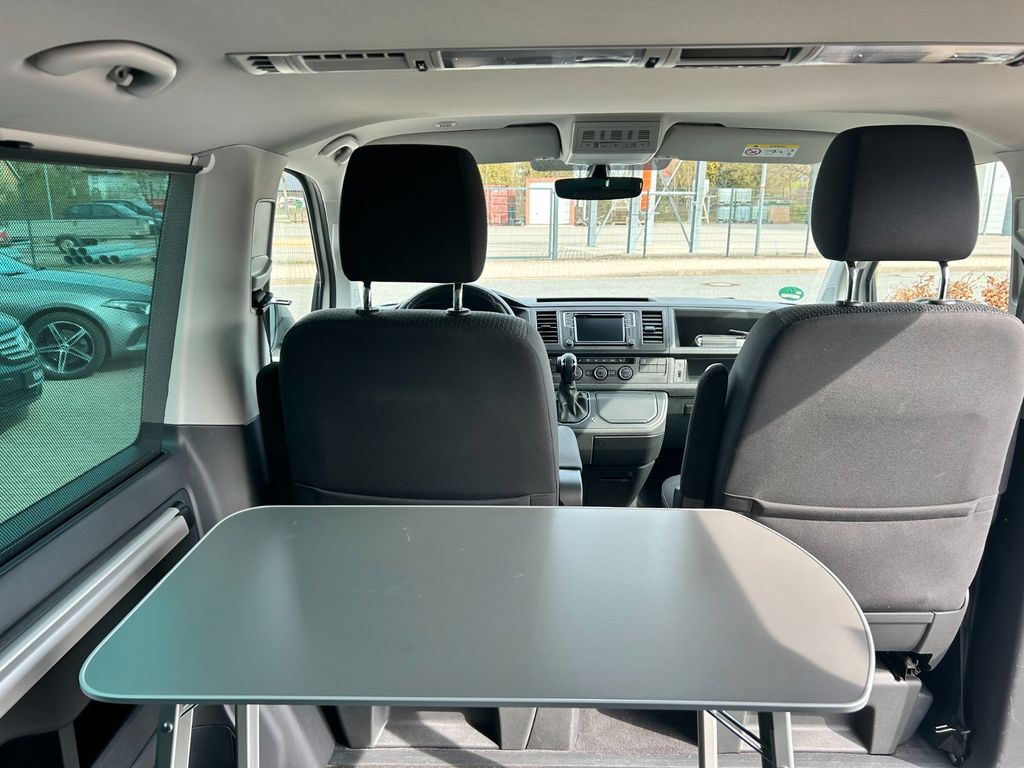 Audio-Navigationssystem Discover Media (Touchscreen-Farbdisplay), Ausstattungs-Paket Licht + Sicht Plus, Dämmglas-Paket, Fahrassistenz-System: Einparkhilfe vorn und hinten, Fahrwerk tiefergelegt, Freilaufkupplung für Doppelkupplungsgetriebe, Klimaautomatik Climatronic (Fahrerhaus + Lade-/Fahrgastraum), Multifunktionsanzeige Plus, Radkappen, Schubladen unter Dreiersitzbank und Abfallbehälter, Sitze im Fahrerhaus: Fahrer- und Beifahrersitz heizbar, Sitze im Lade-/FG-Raum: 1.Reihe, 1 Drehsitz links, Sonnenschutzrollo im Fahrgastraum Weitere Ausstattung: Abdeckung Schiebetürleiste, Airbag Beifahrer abschaltbar, Airbag Fahrer-/Beifahrerseite, Außenspiegel elektr. verstell- und heizbar, Außenspiegel konvex, links, Außenspiegel konvex, rechts, Außenspiegel und Türgriffe außen schwarz, Bodenbelag im Fahrerhaus: Teppich, Bodenbelag im Lade-/Fahrgastraum Kunststoff, Campingtisch, Doppeltonfanfare, Fahrassistenz-System: Bremsassistent (HBA), Fahrassistenz-System: Multikollisionsbremse (Multi Collision Brake), Fenster im Lade-/FG-Raum: - feststehend, vorn und hinten links, Fenster im Lade-/FG-Raum: - feststehend, vorn und hinten rechts, Funkschlüssel (2) klappbar, Haltegriffe A-Säulen, Handschuhfach abschließbar, Heckklappe mit Verglasung, Heckscheibe heizbar, mit Wischanlage, Innenleuchten im Lade-/FG-Raum: Trittstufenleuchten, Innenraumfilter: Pollenfilter, Karosserie/Aufbau: Bus, Kindersicherung an den Schiebetüren, Kraftstofftank: 70 Ltr., Lenksäule (Lenkrad) verstellbar, Mobiltelefon Schnittstelle Bluetooth, Motor 2,0 Ltr. - 110 kW TDI, Nichtraucher-Paket, Radstand 3000 mm, Reifen-Reparaturkit, Reifenkontroll-Anzeige, Schadstoffarm nach Abgasnorm Euro 6d-TEMP, Schiebetür Lade-/Fahrgastraum rechts, SCR-System (AdBlue-Technologie), Seitenairbag / Kopfairbag (Curtain-Airbag) vorn, Sitzbezug / Polsterung: Stoff, Sitze im Fahrerhaus: Beifahrersitz Komfort, Sitze im Fahrerhaus: Fahrer- und Beifahrersitz höhenverstellbar, Sitze im Fahrerhaus: Fahrersitz Komfort, Sitze im Fahrerhaus: Lendenwirbelstützen Fahrer- und Beifahrersitz, Sitze im Lade-/FG-Raum: 2.Reihe, 3er-Sitzbank, Sonnenblenden mit Spiegel, Stahlfelgen 6,5x16, Start/Stop-Anlage Motor, Steckdose (12V-Anschluß) im Fahrerhaus, Stoßfänger in Wagenfarbe, Wärmeschutzverglasung, Zentralverriegelung mit Fernbedienung und Innenbetätigung, Zuheizer, Zul. Gesamtgewicht 3,00 t.