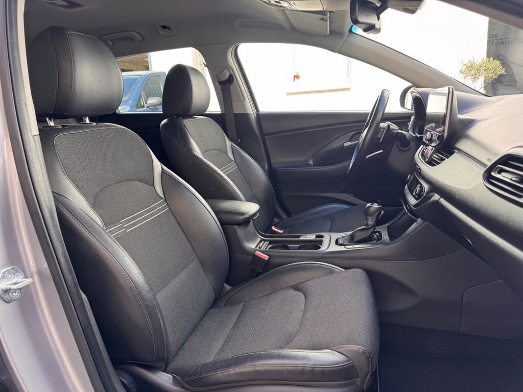 6 Lautsprecher, Ablagetasche an Vordersitzlehnen, Airbag Beifahrerseite, Airbag Beifahrerseite abschaltbar, Airbag Fahrerseite, Aktives Bremslicht (ESS), Audiosystem: Radio RDS, Außenspiegel elektr. verstell- und heizbar, beide, Außenspiegel lackiert, Blinkleuchte in Außenspiegel integriert, Bremsassistent, Dachspoiler, Einschaltautomatik für Fahrlicht / Lichtsensor, Elektr. Bremskraftverteilung, Elektron. Stabilitätskontrolle (ESC) mit Bremsassistent, Fahrassistenz-System: aktiver Totwinkel-Assistent, Fahrassistenz-System: Aufmerksamkeits-Assistent, Fahrassistenz-System: Berganfahrhilfe, Fahrassistenz-System: Einparkhilfe vorn und hinten, Fahrassistenz-System: Fahrprofilauswahl (Drive Mode), Fahrassistenz-System: Fernlichtassistent, Fahrassistenz-System: Sicherheitssystem mit automatischem Notruf (ERA GLONASS / eCall), Fensterheber elektrisch hinten, Fensterheber elektrisch vorn und hinten, mit Auf-/Ab-Automatik, Fensterzierleisten verchromt, Freisprecheinrichtung Bluetooth, Frontscheibe mit Bandfilter oben, Frontscheibe wärmedämmend, Funktions-Paket, Gegenlenkunterstützung (Vehicle Stability Management, VSM), Gepäck-/Laderaumleuchte, Gepäckraumabdeckung / Rollo, Getriebe 7-Gang - Doppelkupplungsgetriebe DCT, Getränkehalter hinten, Getränkehalter vorn, Gurtstraffer, Heckscheibe heizbar, Induktionsladeschale für Smartphone, Isofix-Aufnahmen für Kindersitz, Karosserie: 5-türig, Klimaautomatik 2-Zonen, Kombi-Paket, Komfort-Paket, Kopf-Airbag-System, Kopfstützen hinten verstellbar, Kühlergrill mit Chromrand, Kühlergrill schwarz (glanzlackiert), LED-Paket, Lendenwirbelstütze Sitz vorn links, elektr. verstellbar, Lenkrad heizbar, Lenkrad mit Schaltwippen, Leseleuchte, LM-Felgen, Mild-Hybrid 100 kW (Motor 1,6 Ltr. - 100 kW CRDi), Mittelarmlehne hinten mit Getränkehalter, Modellpflege, Motorhaubenisolierung, Navigations-Paket, Radioempfang digital (DAB+), Reifen-Reparaturkit, Reifendruck-Kontrollsystem, Rücksitzlehne geteilt/klappbar, Schadstoffarm nach Abgasnorm Euro 6d, Schalt-/Wählhebelgriff Leder, Scheibenbeschlagerkennung / Regelung, Seitenairbag vorn, Seitenscheiben ab B-Säule abgedunkelt, Sicherheits-Paket DCT, Sicherheitsgurte vorn höhenverstellbar, Sitz vorn links elektr. verstellbar, Sitz vorn links höhenverstellbar, Sitz vorn rechts elektr. verstellbar, Sitz vorn rechts höhenverstellbar, Sitzbezug / Polsterung: Stoff/Leder, Sonnenblenden mit Spiegel (beleuchtet), Start/Stop-Anlage, Steckdose (12V-Anschluß) im Koffer-/Laderaum, Stoßfänger Wagenfarbe, Türgriffe außen Wagenfarbe, Türgriffe innen verchromt, USB-Anschluss + AUX-IN-Anschluss, Verglasung getönt, Warnanlage für Sicherheitsgurte, Fahrer-/Beifahrerseite