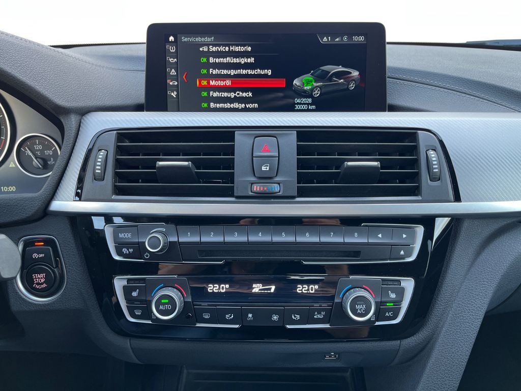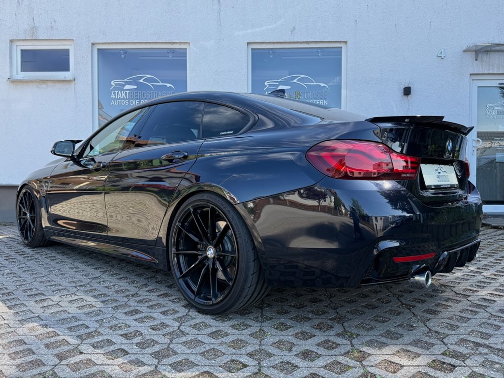 Zum Verkauf steht ein sehr schön ausgestattetes BMW 440i Gran Coupé mit Sport-Automatikgetriebe, M Sportpaket, schwarzen 20" Alufelgen und Gewindefahrwerk in der Farbkombination Carbonschwarz Mtallic und Alcantara in anthrazit. Das Fahrzeug befindet sich in einem sehr gepflegtem Zustand, ist aus 2. Hand, unfallfrei und wurde ausschließlich durch BMW Händler gewartet. Der Ölservice samt TÜV & AU sind letzte Woche durch BMW erneuert worden, folglich stehen hier keine Investitionen an. Es handelt sich hierbei um eine Deutsche Erstauslieferung, kein US Import und ebenso um keinen Mietwagen.Die umfangreiche Ausstattung umfasst: