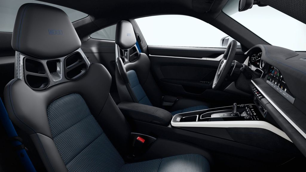 - Race-Tex interior Rallye Design Package with extensive items in leather, stitching in Sharkblue