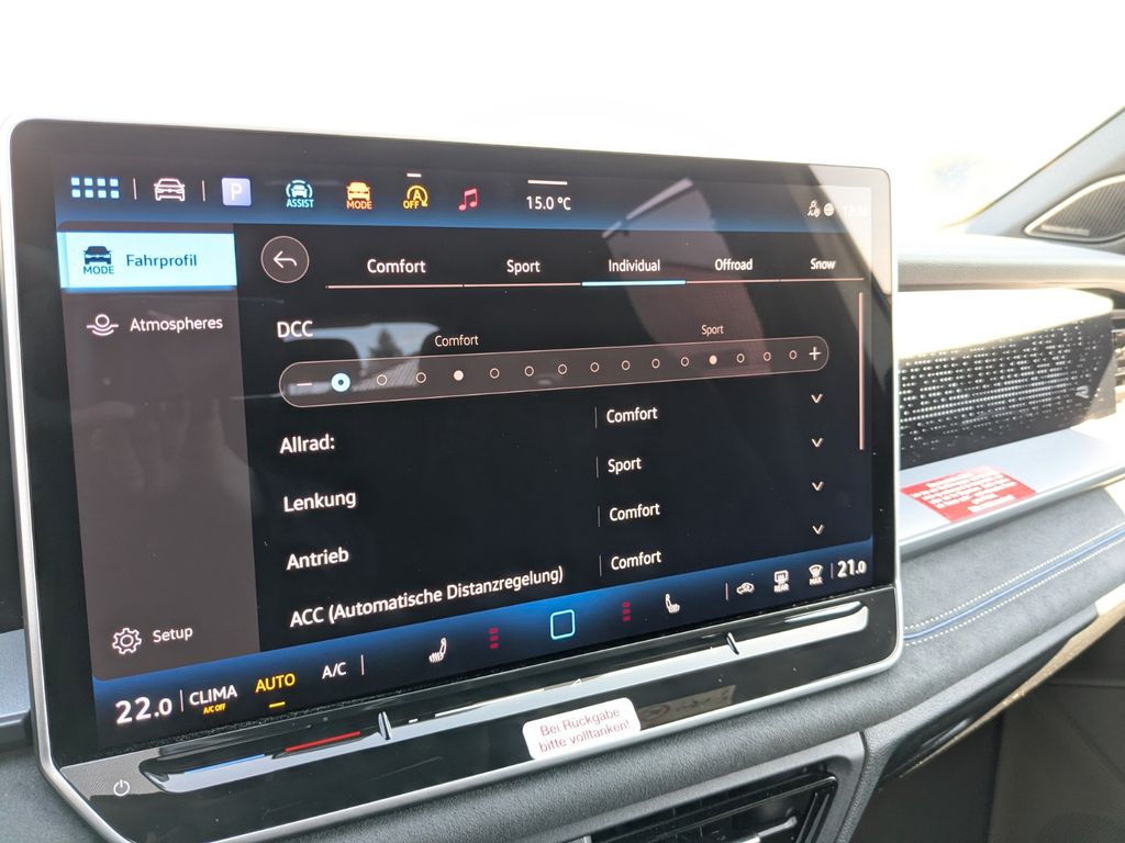 Abbiege- und Allwetterlicht / Schlechtwetter-Licht, Adaptive Fahrwerksregelung (DCC Pro) inkl. Fahrprofilauswahl, Airbag Fahrer-/Beifahrerseite, Beifahrerairbag abschaltbar, Ambiente-Beleuchtung (30 Farben, Armaturenbrett und Türverkleidung, Dekoreinlagen durchleuchtet), App-Connect Wireless (Apple CarPlay, Android Auto), Ausstattung R-Line, Automatische Fahrlichtschaltung mit Leaving Home / Coming-Home-Lichtfunktion, Tagfahrlicht LED, Außenspiegel mit Umfeldleuchte und Projektionsfunktion, Bordwerkzeug, Dachhimmel Stoff, schwarz, Digital Cockpit PRO (Instrumentenanzeige digital), Einstiegsleisten vorn (Aluminium), Elektron. Stabilitäts-Programm (ESP) mit Bremskraftverstärker elektro-mechanisch, Fahrassistenz-System: Abbiegebremsfunktion und Ausweichunterstützung, Fahrassistenz-System: Ablenkungs- und Müdigkeitserkennung, Fahrassistenz-System: Autom. Distanzregelung (ACC inkl. Stop&Go-Funktion), Fahrassistenz-System: Berganfahr-/Abfahr-Assistent, Fahrassistenz-System: Kreuzungs-Assistent, Fahrassistenz-System: Notbremsassistent Front assist mit Fußgänger- und Fahrraderkennung, Fahrassistenz-System: Spurwechselassistent (Side Assist) mit Auspark-Assistent und Ausstiegswarnung, Fahrassistenz-System: Verkehrszeichenerkennung, Fahrerlebnisschalter inkl. Innenraumerlebnis Atmospheres, Fußgänger-Schutzmaßnahmen erweitert, Fußmatten Textil, Fzg. ohne Hybrid, Gepäckraumboden höhenverstellbar, Geschwindigkeitsbegrenzer mit vorausschauender Geschw.-Regelung, Innenausstattung: Dekor-Set R-Line, durchleuchtet, Innenspiegel mit Abblendautomatik, Isofix-Aufnahmen für Kindersitz an Beifahrersitz und Rücksitze außen (inkl. i-Size-Kindersitze), Karosserie: 5-türig, Kindersicherung im Fahrgastraum, Klimaanlage Air Care Climatronic 3-Zonen inkl. Fondbedienung und Aktiv-Kombi-Filter, Kopfstützen hinten (3-fach), Lendenwirbelstützen vorn, pneumatisch verstellbar, Mittelkonsole Standard, Mobile Online Dienste Vorbereitung We Connect und We Connect Plus, Motor 2,0 Ltr. - 142 kW TDI, Nichtraucher-Paket, Notrufsystem, Parkbremse elektrisch mit Auto-Hold-Funktion, Pedale Edelstahl, Radioempfang digital (DAB+), Radstand Standard, Rücksitz geteilt / klappbar, verschiebbar, Mittelarmlehne und Durchladefunktion, Schadstoffarm nach Abgasnorm Euro 6e, SCR-System (AdBlue-Technologie), Seitenairbag und Kopfairbag vorn und hinten, Center-Airbag vorn, Servolenkung elektro-mechanisch und geschwindigkeitsabhängig, Sicherheitsgurte hinten außen mit Gurtstraffer, Sitzbezug / Polsterung: Stoff R-Line, Sitze vorn höhenverstellbar, ErgoActive Sitz links, Sitze vorn mit Massagefunktion, Sitze: Sport-Komfortsitze vorn, Sonnenblenden mit Spiegel (beleuchtet), Start/Stop-Anlage mit Rekuperation, Steckdose 12V im Koffer-/Laderaum, Verbandkasten, Warndreieck und Warnweste(n), Warnanlage für Sicherheitsgurte vorn und hinten