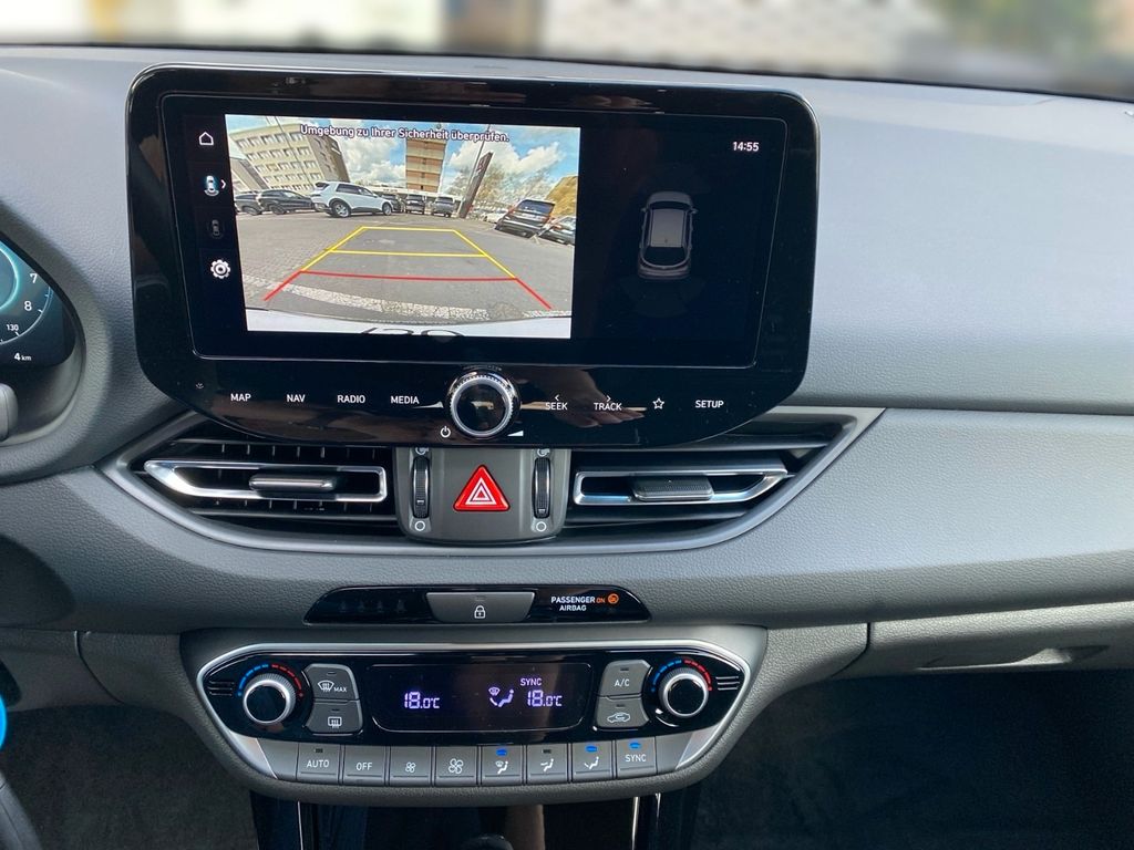 6 Lautsprecher, Airbag Beifahrerseite, Airbag Beifahrerseite abschaltbar, Airbag Fahrerseite, Aktives Bremslicht (ESS), Audio-Navigationssystem, Audiosystem: Radio RDS, Außenspiegel elektr. anklappbar, Außenspiegel elektr. verstell- und heizbar, beide, Außenspiegel schwarz glänzend, Blinkleuchten LED in Außenspiegel integriert, Dachhimmel schwarz, Dachspoiler schwarz, Digital Cockpit (Instrumentenanzeige Digital), Einschaltautomatik für Fahrlicht / Lichtsensor, Elektron. Stabilitätskontrolle (ESC) mit Bremsassistent, Fahrassistenz-System: aktiver Spurhalteassistent (LKAS, Lane Keep Assist System), Fahrassistenz-System: Aufmerksamkeits-Assistent, Fahrassistenz-System: Autonome Notbremsfunktion inkl. Frontkollisionswarnung (FCA), Fahrassistenz-System: Berganfahrhilfe, Fahrassistenz-System: Einparkhilfe vorn und hinten, Fahrassistenz-System: Fahrprofilauswahl (Drive Mode), Fahrassistenz-System: Fernlichtassistent, Fahrassistenz-System: Insassenalarm (RSA), Fahrassistenz-System: Multikollisionsbremse (Multi Collision Brake), Fahrassistenz-System: Sicherheitssystem mit automatischem Notruf (ERA GLONASS / eCall), Fahrassistenz-System: Verkehrszeichenerkennung, erweitert (Geschwindigkeits-Regel-/Begrenzeranlage), Fensterheber elektrisch hinten, Fensterheber elektrisch vorn und hinten, mit Auf-/Ab-Automatik, Freisprecheinrichtung Bluetooth, Frontscheibe wärmedämmend, Gepäck-/Laderaumleuchte, Gepäcknetz im Koffer-/Laderaum, Gepäckraumabdeckung / Rollo, Getriebe 7-Gang - Doppelkupplungsgetriebe DCT, Gurtstraffer, Heckleuchten LED, Heckscheibe heizbar, Induktionsladeschale für Smartphone, Isofix-Aufnahmen für Kindersitz, Karosserie: 5-türig, Klimaautomatik 2-Zonen, Kopf-Airbag-System, Kopfstützen hinten verstellbar, Lendenwirbelstütze Sitz vorn links, elektr. verstellbar, Lenkrad heizbar, Lenkrad mit Schaltwippen, Lenksäule (Lenkrad) verstellbar (vertikal / axial), Leseleuchten vorn und hinten LED, LM-Felgen, Mild-Hybrid 103 kW (Motor 1,5 Ltr. - 103 kW T-GDI), Mittelarmlehne hinten mit Getränkehalter, Modellpflege (2), Otto-Partikelfilter (OPF), Parkbremse elektrisch (EPB), Radioempfang digital (DAB+), Reifen-Reparaturkit, Reifendruck-Kontrollsystem, Rückfahrkamera, Rücksitzlehne geteilt/klappbar, Schadstoffarm nach Abgasnorm Euro 6e, Schalt-/Wählhebelgriff Leder, Scheibenbeschlagerkennung / Regelung, Scheinwerfer LED, Seitenairbag vorn, Seitenscheiben ab B-Säule abgedunkelt, Service-System: Online Update OTA (Over The Air), Service-System: Remote Services (Blue Link), Sicherheitsgurte vorn höhenverstellbar, Sitz vorn links höhenverstellbar, Sitz vorn rechts höhenverstellbar, Sitzbezug / Polsterung: Stoff, Sitzheizung vorn, Smartphone Schnittstelle (Apple CarPlay & Android Auto), Sonnenblenden mit Spiegel (beleuchtet), Start/Stop-Anlage, Steckdose (12V-Anschluß) im Koffer-/Laderaum, Touchscreen-Farbdisplay (10,25 Zoll), Türgriffe außen Wagenfarbe, Türgriffe innen verchromt, USB-Anschluss (Typ C), USB-Anschluss + AUX-IN-Anschluss, USB-Anschluss hinten (Typ C), Verglasung getönt, Warnanlage für Sicherheitsgurte, Fahrer-/Beifahrerseite