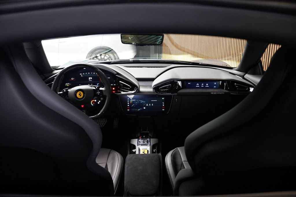Das moderne Interieur wird durch das digitale Armaturenbrett perfekt abgerundet. Die 360-Grad-Kamera, die durch vier zusammenarbeitende Kameras ermöglicht wird, bietet eine umfassende Sicht – ein großer Vorteil beim Manövrieren in engen Straßen und auf Parkplätzen. Der adaptive Tempomat ist eine komfortable und sichere Option. Das System reguliert die Geschwindigkeit und hält automatisch einen sicheren Abstand zum vorausfahrenden Fahrzeug. Die intelligente Sprachsteuerung erkennt und führt gesprochene Befehle aus. Für alle, die hohe Ansprüche an Klang und Akustik stellen, ist dieses Fahrzeug mit einem High-End-Audiosystem ausgestattet. Dieser Ferrari verfügt über ein lederbezogenes Armaturenbrett, kabelloses Laden, DAB+, Keyless Go, ein JBL-Soundsystem und einen Getränkehalter.