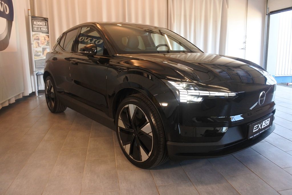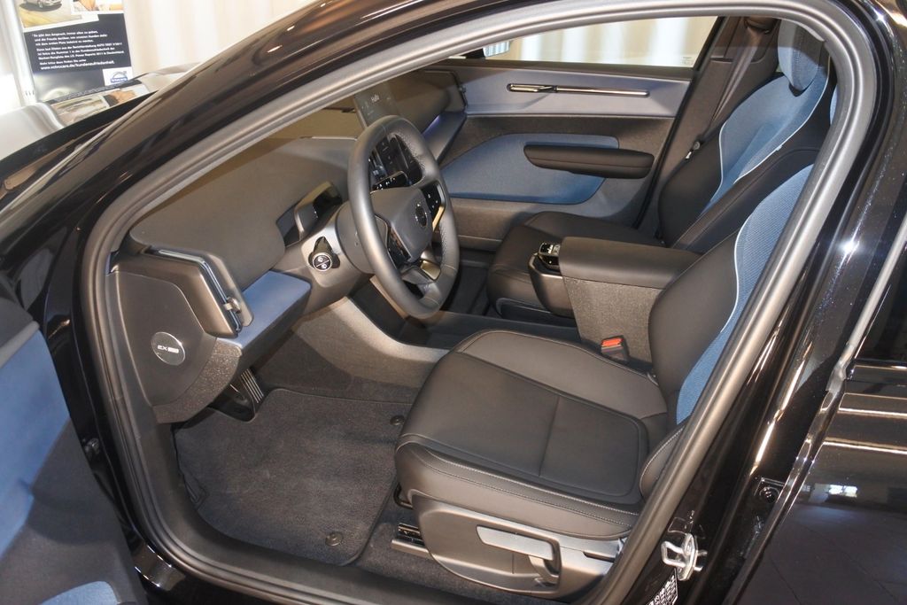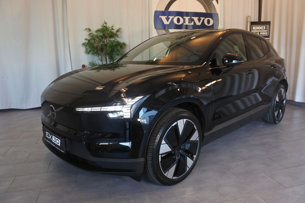 Entdecken Sie den Volvo EX30, ein vielseitiges Elektro-SUV mit Allradantrieb und beeindruckender Leistung von 428 PS. Dieses gebrauchte Modell überzeugt durch seine umfangreiche Ausstattung und moderne Technologie. Die 69 kWh Batterie ermöglicht eine Reichweite von 449 km und lässt sich an Schnellladesäulen in nur 27 Minuten aufladen. Die schwarze Metallic-Lackierung harmoniert perfekt mit dem blauen Stoffinterieur. Für Komfort sorgen die 2-Zonen-Klimaautomatik, elektrische Heckklappe und das schlüssellose Zugangssystem. Das Fahrzeug bietet modernste Sicherheitssysteme wie Spurhalteassistent, Totwinkelwarner und Kollisionsvermeidung. Die Batterie ist mit einer 8-Jahres-Garantie bis 160.000 km abgesichert. Mit nur einem Vorbesitzer und Erstzulassung 2025 präsentiert sich dieser Volvo in hervorragendem Zustand.- Leistungsstarker Elektro-SUV mit Allradantrieb und 428 PS