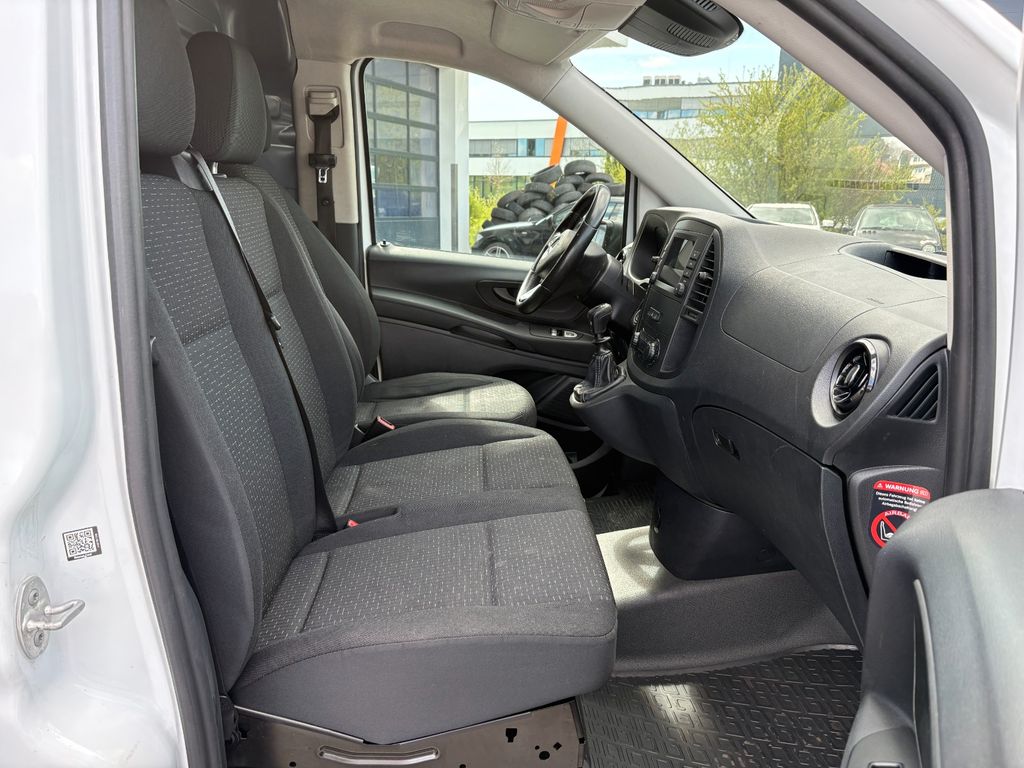 3-Tasten-Fernbedienung für Zentralverriegelung, 3. Bremsleuchte, Adaptives Bremslicht, Airbag Beifahrerseite, Airbag Fahrerseite, Anfahrhilfe (Berganfahr-Assistent), Außenspiegel asphärisch, beide, Außentemperaturanzeige, Befestigungsschienen für Dachträger, BlueEfficiency-Paket, Bremsassistent, Bremssystem mit ABS+ASR, Design- und Ausstattungslinie Base, Fahrassistenz-System: Attention-Assist (Müdigkeitserkennungs-Sensor), Fahrassistenz-System: Pannenmanagement, Fahrassistenz-System: Seitenwind-Assistent, Frontscheibe mit Scheibenantenne, Generator 185 A, Getriebe 6-Gang - FSG, Getränkehalter hinten, Getränkehalter vorn, Gurtstraffer, Haltegriff Beifahrerseite, Handschuhfach abschließbar, Karosserie/Aufbau: Kasten Standard, Karosserie/Aufbau: Kompakt, Kommunikationsmodul (LTE) für digitale Dienste, Laderaumtrennwand durchgehend, Lastenverankerung / Verzurrösen, Mercedes-Benz Notrufsystem, Modellpflege, Motor 1,7 Ltr. - 100 kW CDI KAT, Nebelschlussleuchte, Radstand 3200 mm, Schadstoffarm nach Abgasnorm Euro 6d-TEMP, Schiebetür Lade-/Fahrgastraum rechts, Sicherheitsgurt-System mit Warnanlage (Fahrer-/Beifahrerseite), Sitzbezug / Polsterung: Stoff, Sitze im Fahrerhaus: Fahrersitz verstellbar, Verkleidung Fenstersäulen, Verkleidung im Lade-/FG-Raum: Hartfaser halbhoch, Verzurrschienen im Laderaum - Seitenwand an Dachrahmen, Wartungsintervall-Anzeige Assyst, Zul. Gesamtgewicht 2,80 t